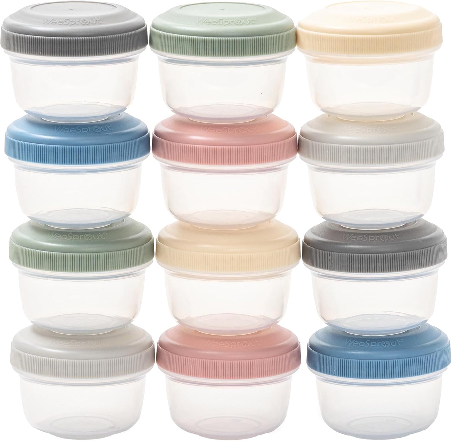 WeeSprout Leakproof Baby Food Storage - 12 Set, Small Plastic Containers with Lids, Lock in Freshness, Nutrients & Flavor, Freezer & Dishwasher Friendly, 4oz Snack Containers (Variety Matte)