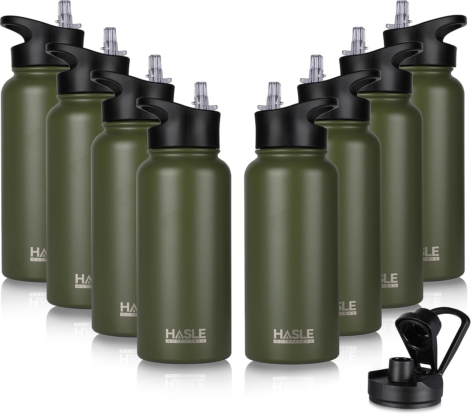 HASLE OUTFITTERS 32 oz Insulated Water Bottle Stainless Steel Double Walled Vacuum Sports Water Bottle with 2 Lids (Straw and Spout Lid) for Gym Camping Hiking(Army Green,8)