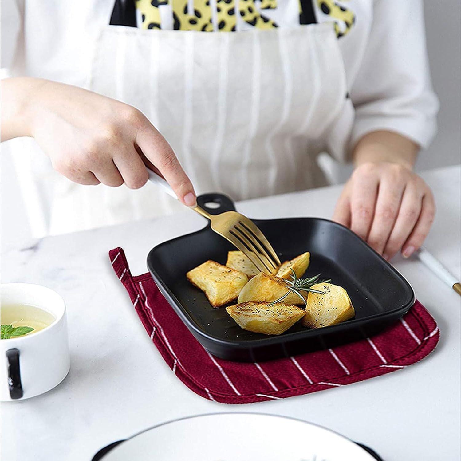 - 【UNIQUE DESIGN】The kitchen oven mitts and pot holder come with rope design, so it is easy to store and hang them via the suspension rings when you are not using, save your room and make your kitchen look more cleaner; The unique grain on the oven mitt and pot holders provide a secure non-slip grip while handling pots and pans