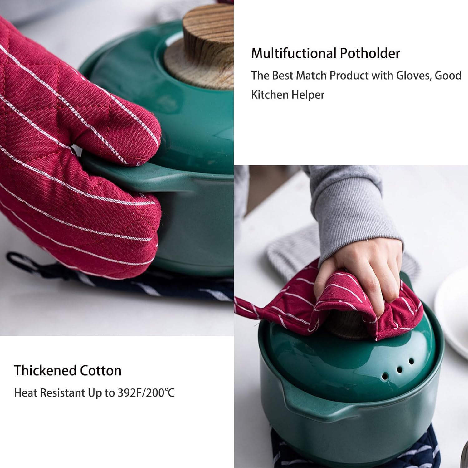 4Pcs Oven Mitts and Pot Holders, Heat Resistant Oven Mitts Set with Pothholder,Heat Resistant Microwave Gloves Safe for Baking,Cooking, BBQ (Red)
