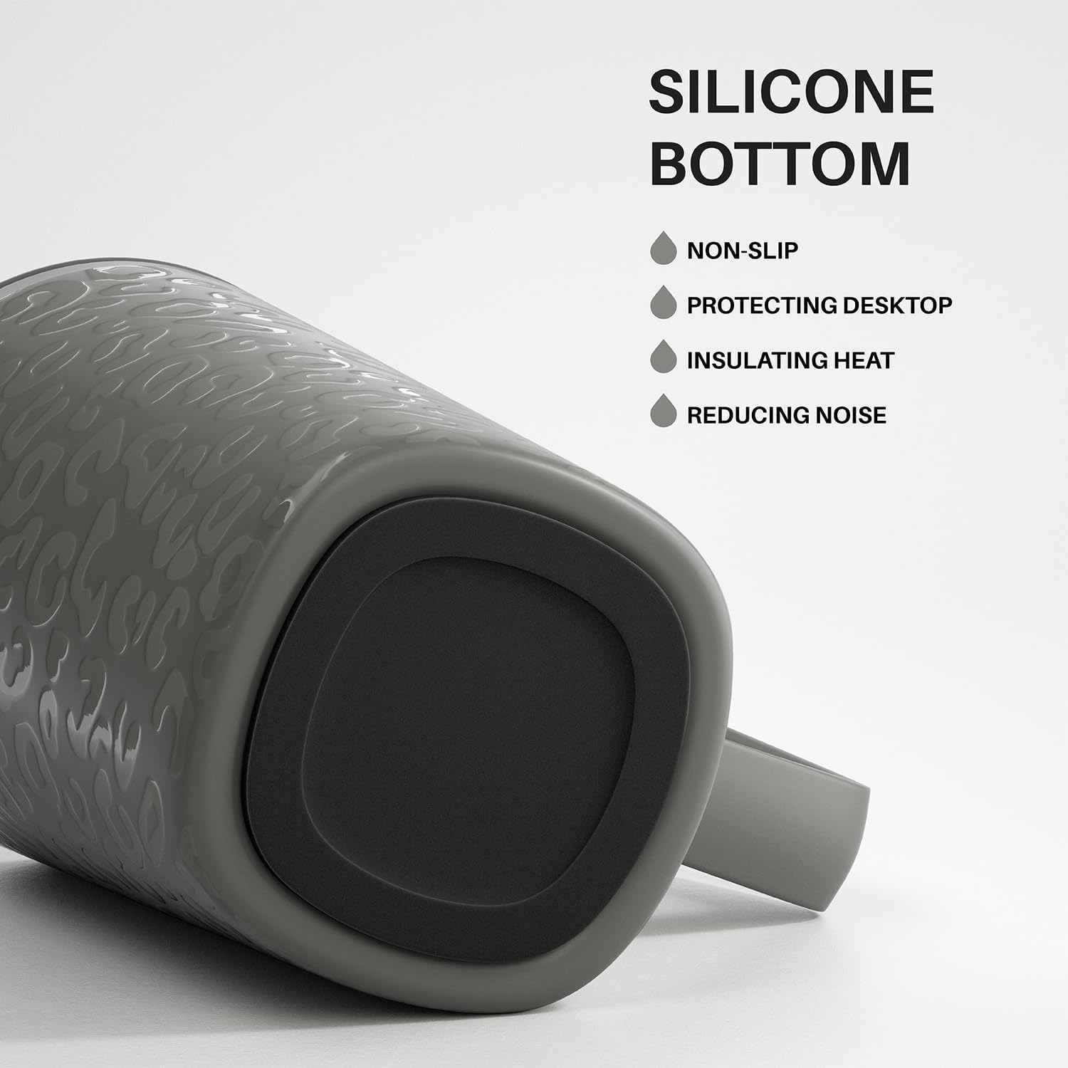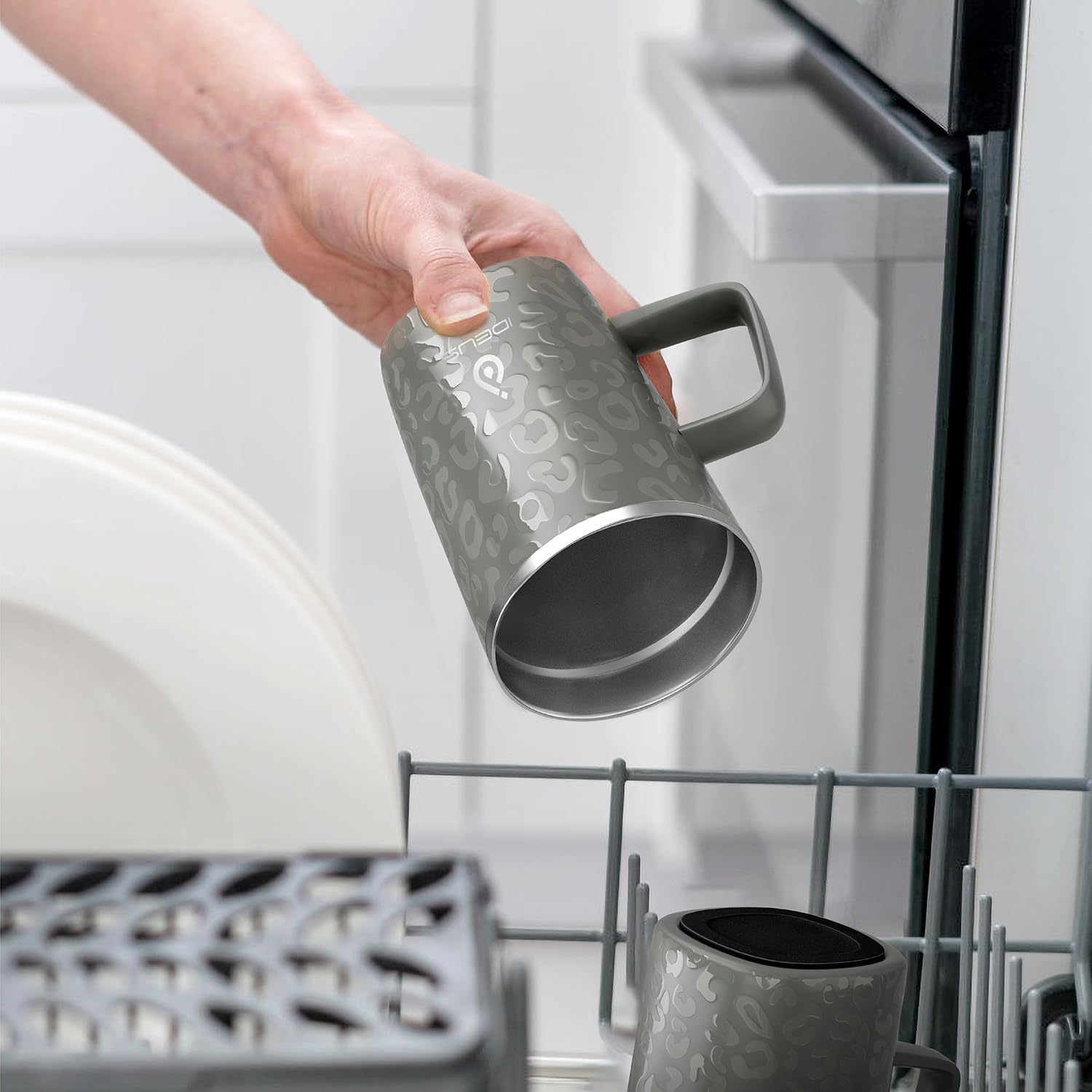 Ideus Vacuum Insulated Coffee Mug, 16oz Reusable Stainless Steel Thermal Double Walled cup with Handle and Slider Lid for Hot & Cold Beverages, BPA Free (Leapord Gray)