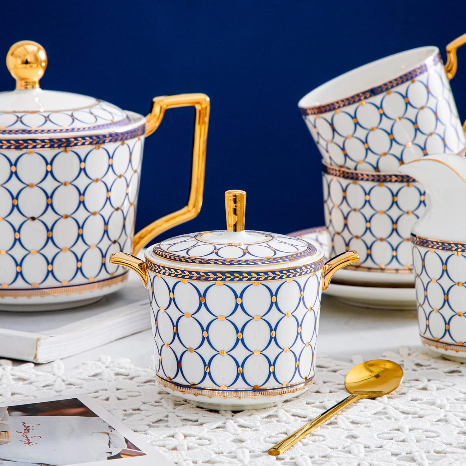 CwlwGO-15 Pieces Porcelain Tea Service Set for 4, Bone China Coffee Tea Sets,Tea Cup Set with Teapot, Sugar Bowl, Creamer Pitcher And Gifts Box, Britain Tea Cups and Saucer Sets For Women,Adults.