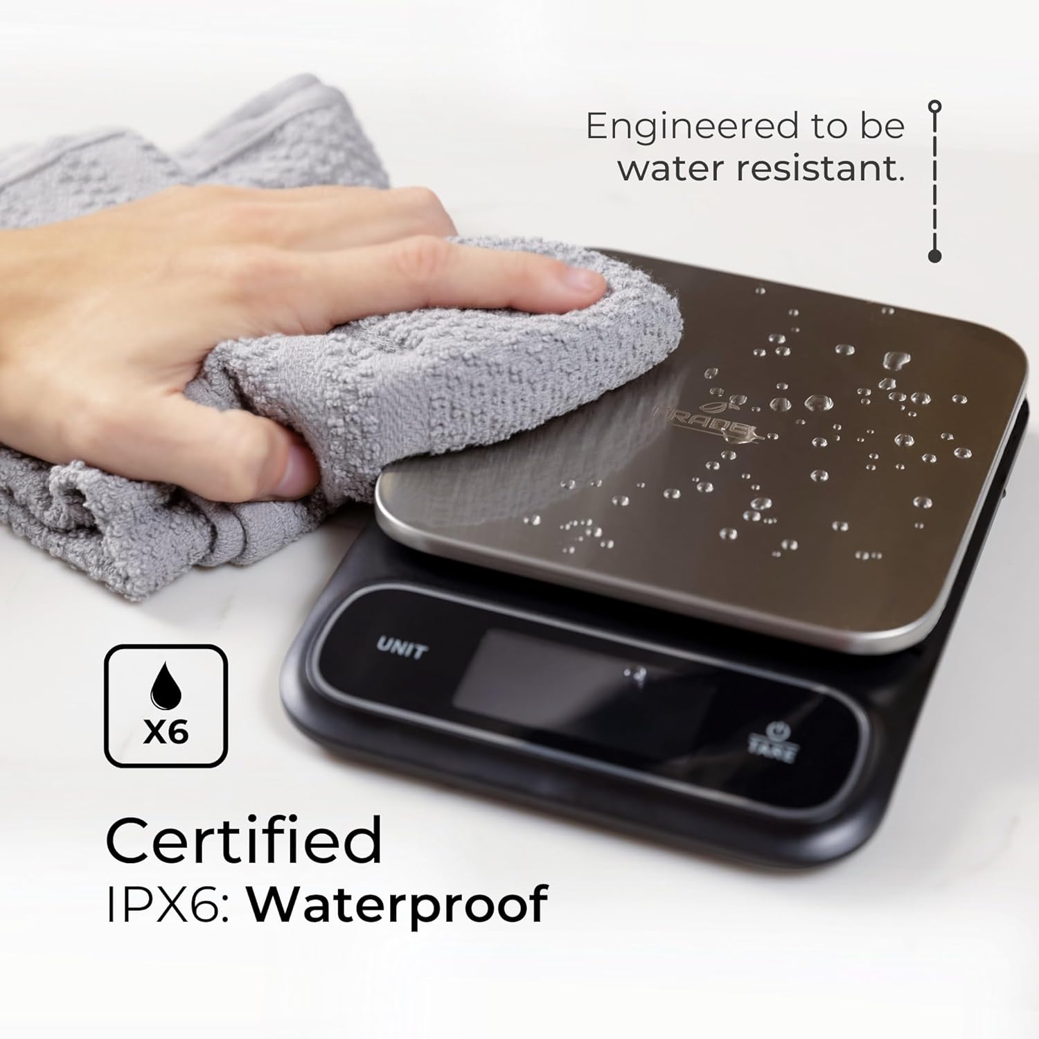 - Premium & Elegant: Sleek, thin profile makes this small portable food scale easy to store and travel with. Stainless steel plate and protective seal make it waterproof, smudge-proof, & easy to clean.