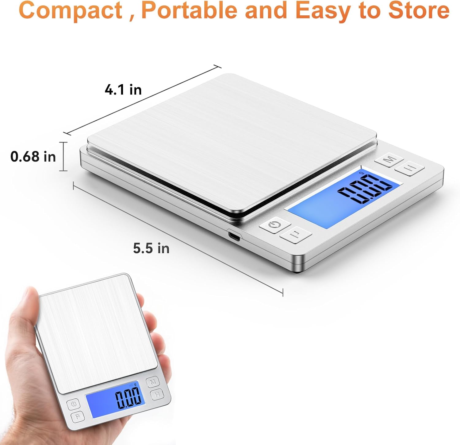 - [ Upgraded 1000g Capacity / 0.01g Resolution ] The latest weighing sensor ensures high-precision measurement of 0.01g, and expands the max range to 1000g. Minimum weighing weight: 0.05g