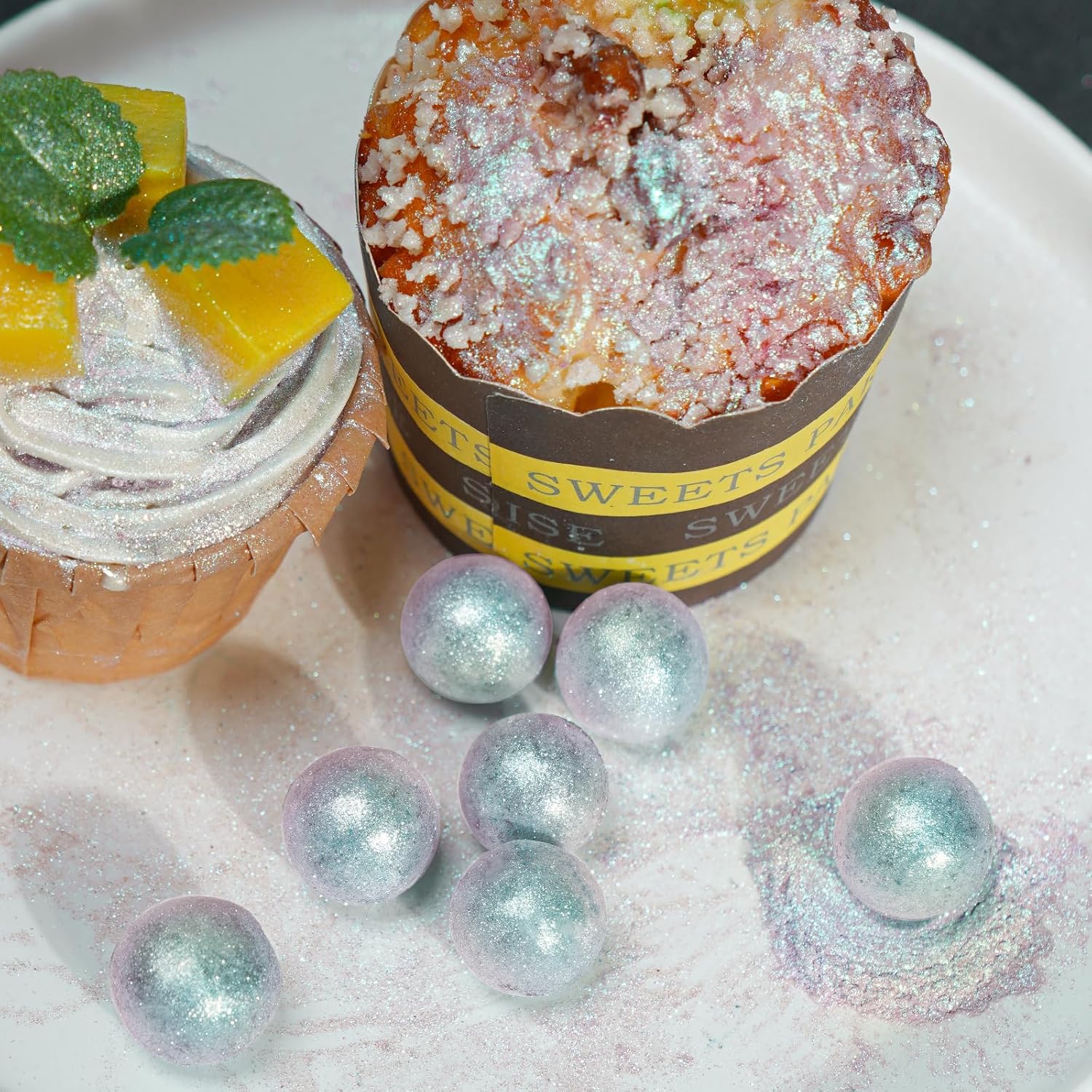 - ✔️【Easy to Use】Specially developed for food decoration and craft industries, this luster dust produces realistic looks by highly pigmented colors with a metallic finish. The pretty fine grain is more convenient for painting. To add glimmer and sparkle to your creations, simply sprinkle or dry brush the luster glitters on them. This product adheres very well to both wet and dry mediums. Attention: Seal and store glitter powder in a cool and dry place after use. Do not expose to excessive heat.