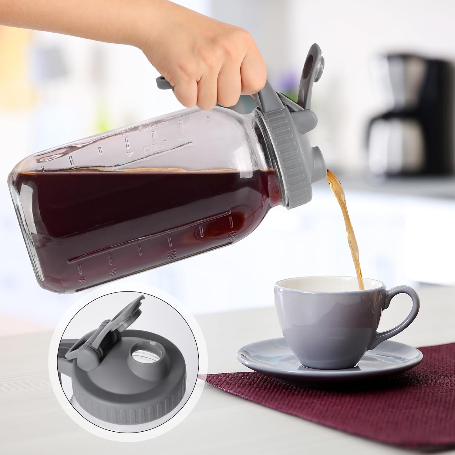 Cold Brew Mason Jar iced Coffee Maker, Durable Glass, - 64 oz (2 Quart / 1.9 Liter), With Handle& Stainless Steel Filter for Iced Brew Coffee, Lemonade, Ice Tea, Homemade Fruit Drinks Container