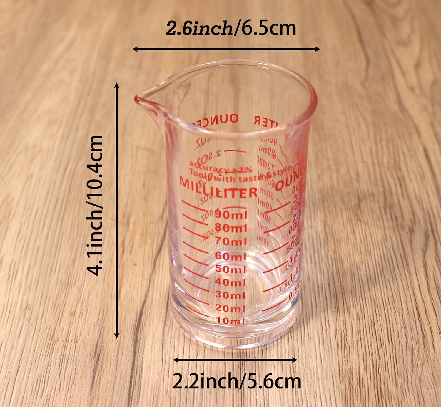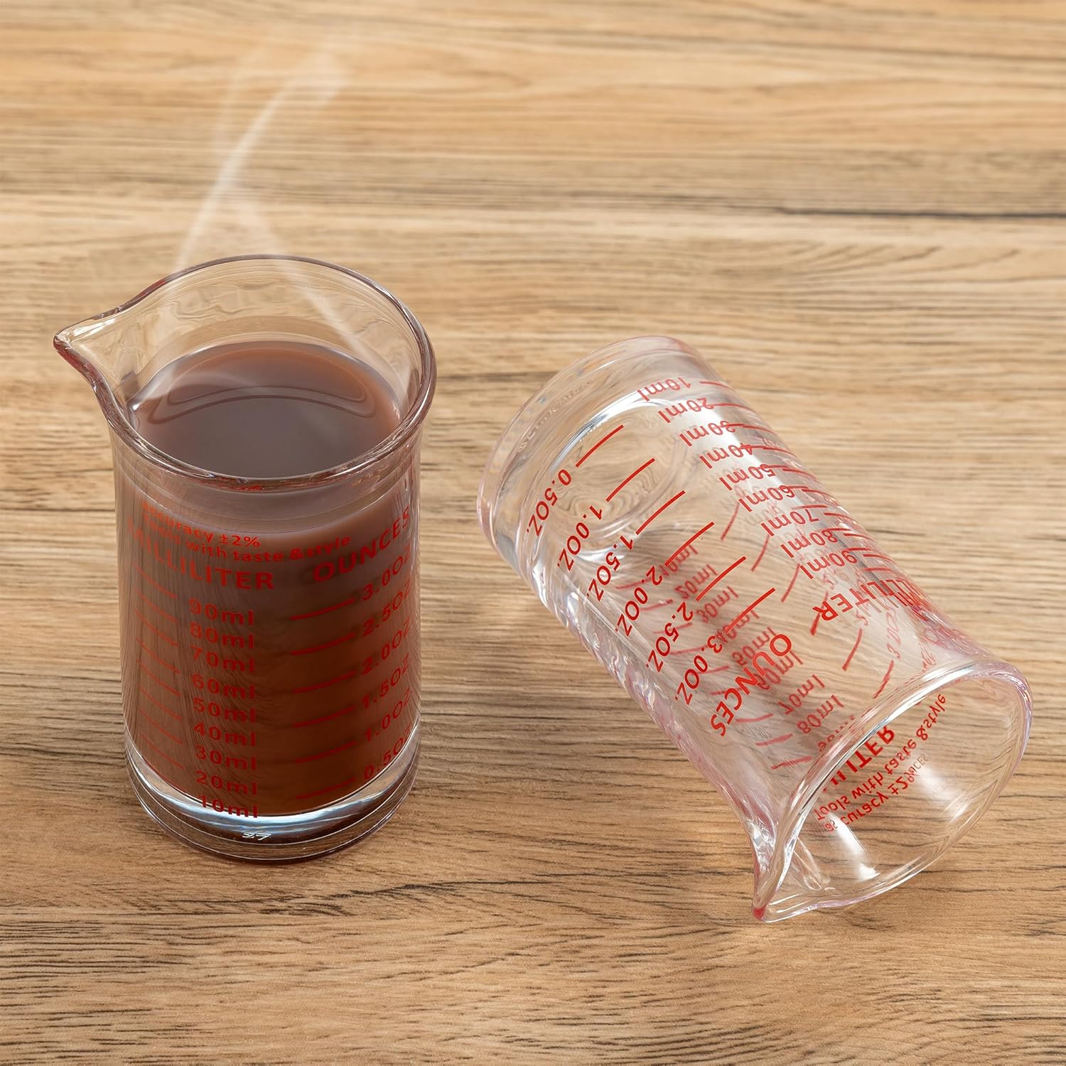Ackers 3oz/90ml Glass Measuring Cup – Shot Glass with Double Scale-Ounce,Ml Markings for Kitchen & Bar(Red Line)