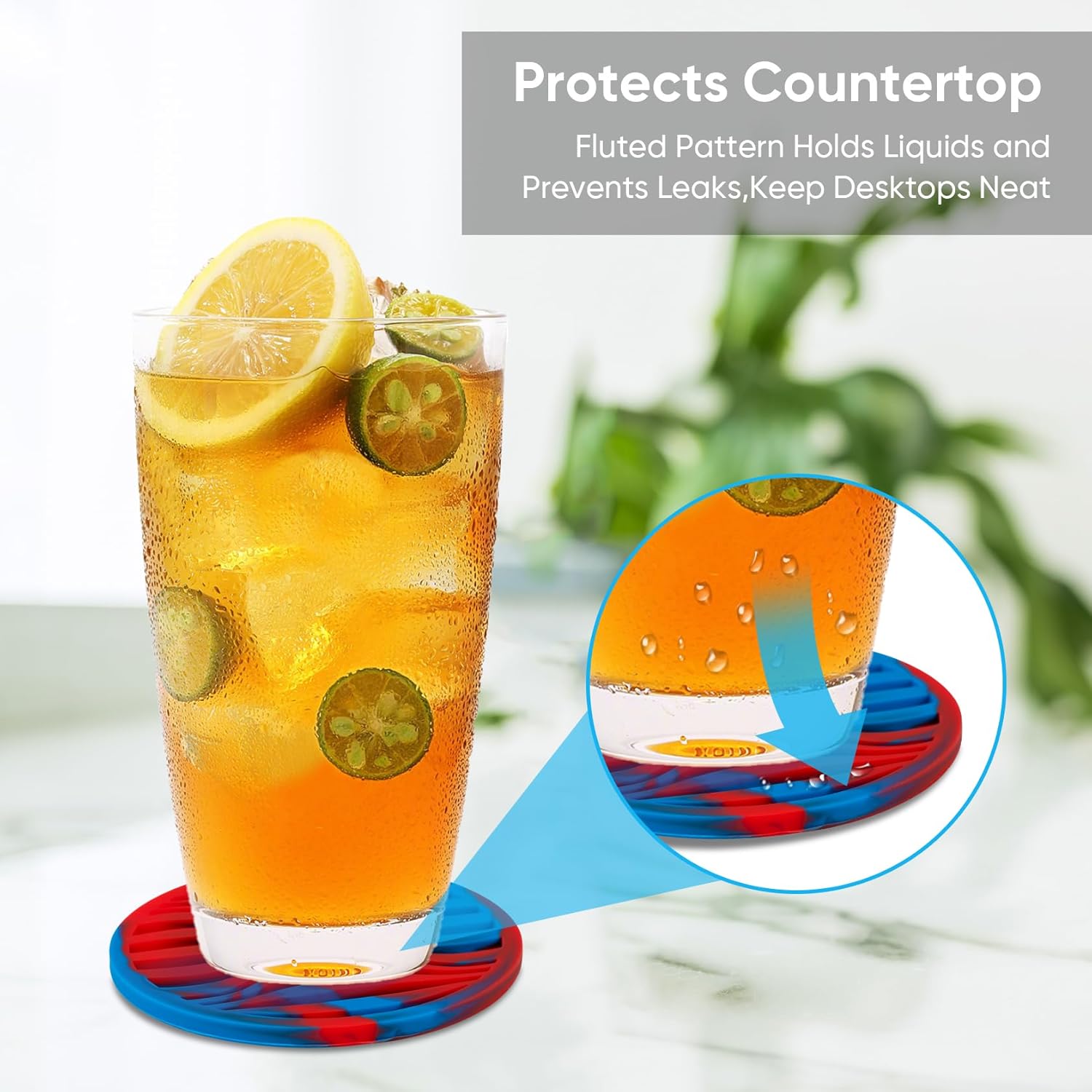 - DURABLE & PRACTICAL:Silicone coasters can be used for a long time,stain-proof,waterproof,heat-resistant,can be used for cold or hot drinks in any occasions,suitable for desktop made of any material,such as wood,granite,glass,marble,etc,to protect the surface of countertops or furniture from being scratched.