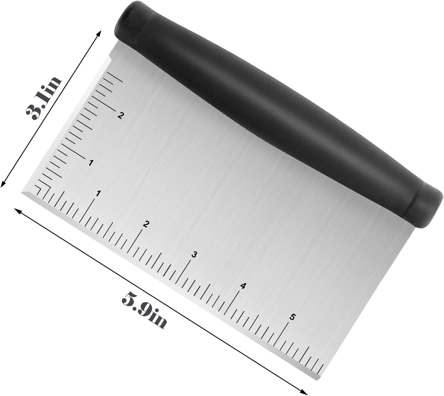 - 【Stainless steel material】: The stainless steel construction of the bench scraper for baking makes it durable, and it's also easy to clean in the dishwasher for convenience