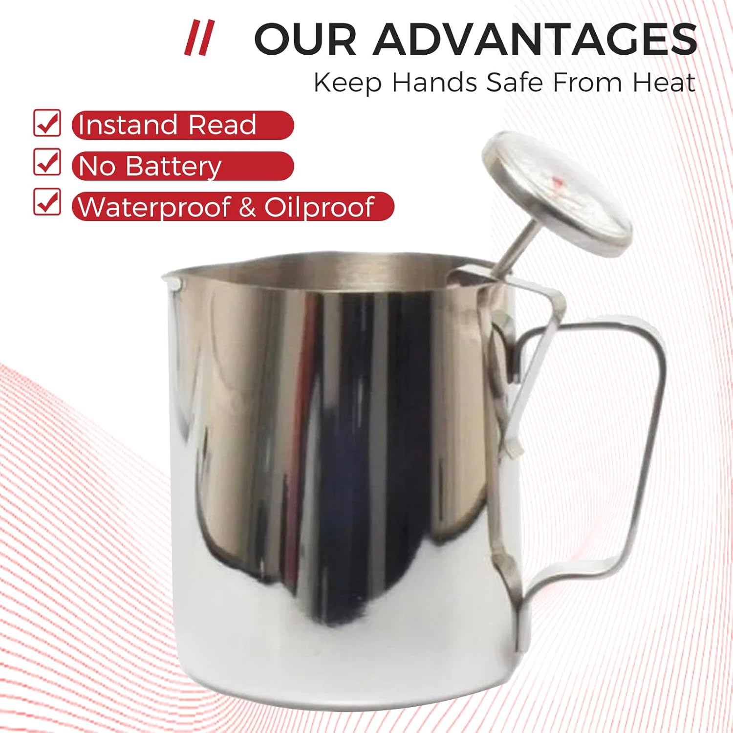 - [TEMPERATURE RANGE]: This milk frothing thermometer can accurately measure temperature from -10-100°C/0-220 ℉. With this pocket thermometer, you can measure a lot of liquid, like espresso coffee, milk, chocolate, etc. You will know the exact temperature of baby milk, better to feed. The immediate read pocket food thermometer can be applied to make cappuccino, latte, milk foam, etc