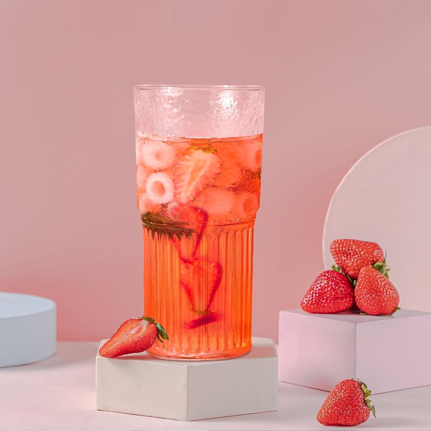 Glass Cups With Lids and Glass Straws,20 OZ 4pcs High Borosilicate Glass Tumbler Iced Coffee Water Smoothie