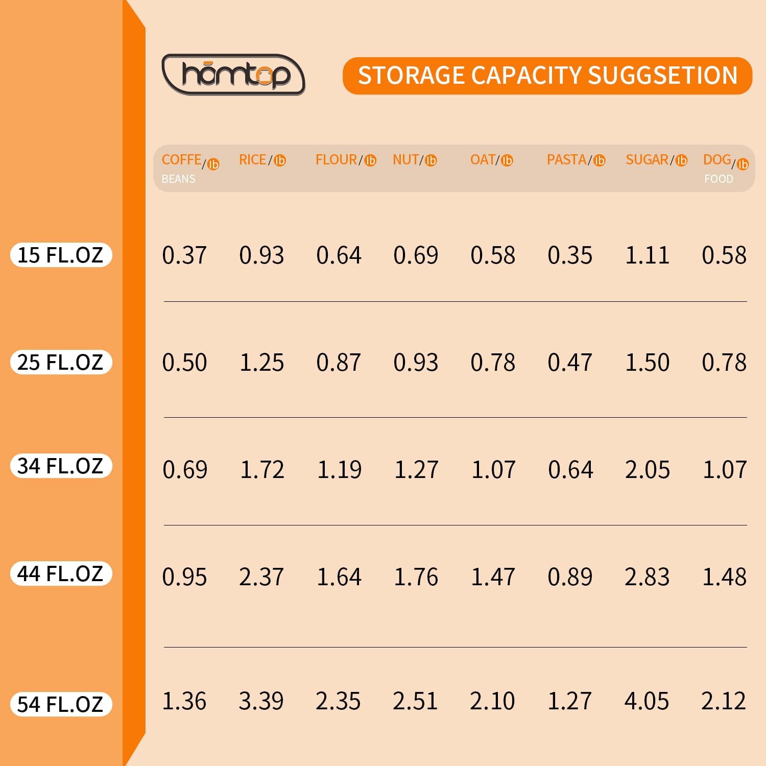 - Food Storage - Nice glass container for various solid food, coffee beans, sugar, cookies, nuts, snacks, biscuits and more. The capacity 15 oz is a reference to fluid, solid food may not reach the maximum.