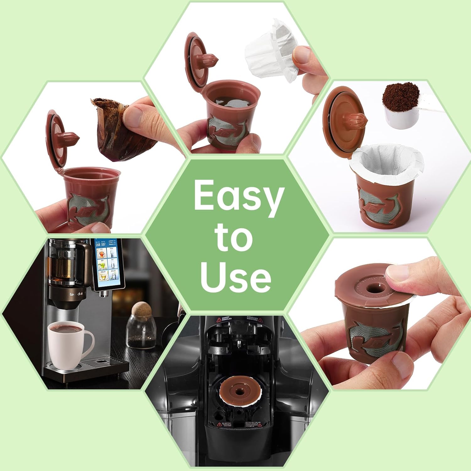 - 【Efficient and Time-saving morning】: Simply insert filter in reusable keuig cups, tuck keurg filter under hinge, fill with coffee and brew! All you have to do is simply flip the keurg cups and discard the paper filter when finished. Make multiple cups in a row without needing to wash your reusable cup between uses. Time saving and enjoy more cups of coffee at the hurried morning