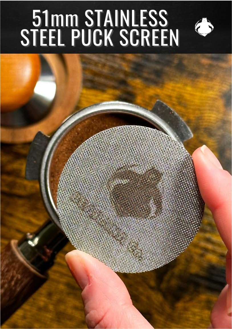 - PUCK SCREEN FILTER: Elevate your coffee's flavor while protecting your espresso machine from clogs with the 1.7 mm thick, high-quality stainless steel puck screen filter. This protective element guarantees a smooth extraction process, ensures even water distribution, and enhances the overall lifespan of your coffee machine.