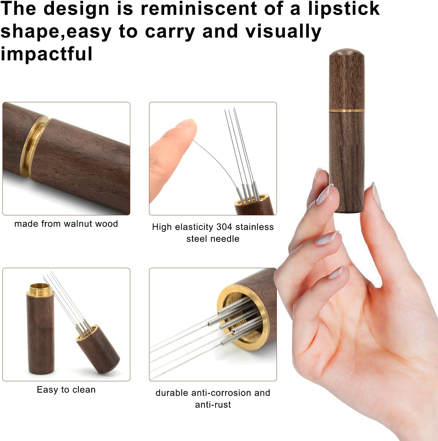 - Mini WDT Tool-A Stylish Companion: As part of the espresso tamper Set, our Mini WDT Tool dons a chic lipstick-inspired design. Beyond its aesthetic charm, this espresso accessory ensures even grounds distribution, giving you the upper hand in crafting the perfect espresso.