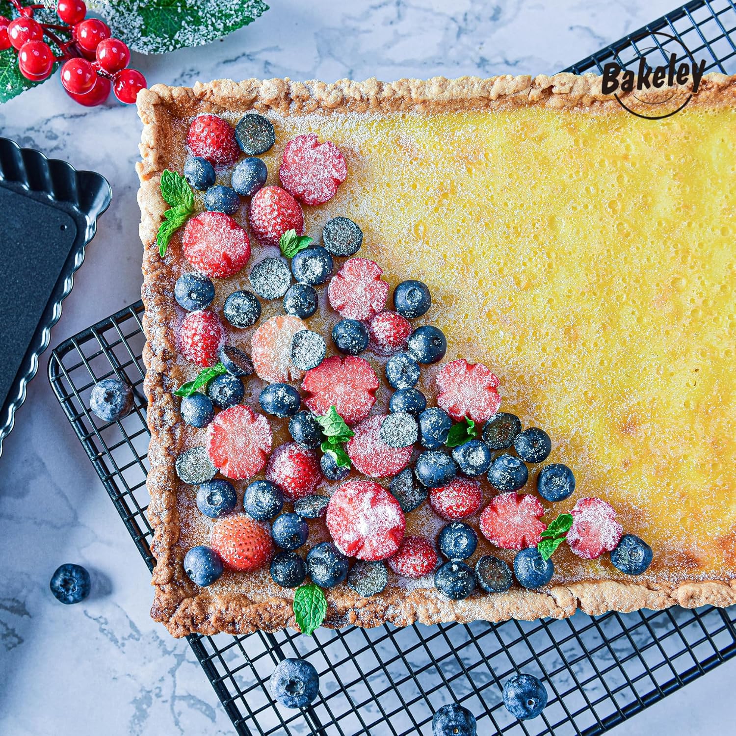 - 【Versatile Use for Baking】Bakeley tart pan is ideal for making quiche, cheese cakes, chocolate cakes, tarlets, fruit flans, pizza, egg tarts and others. Bakeley tart pans are perfect for any kind of tarts. Crust slides out of the pans so well, and it’s a good choice for hobbyists, bakers and chefs.
