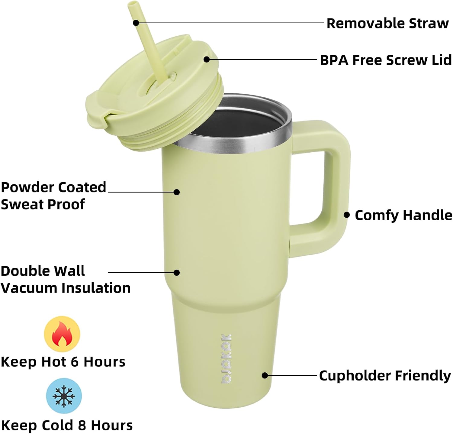 - Cupholder Friendly Travel Mugs With Handle: The Insulated Cups Has a Narrow Bottom And A Wide Mouth Fits Most Cup Holder In Car, With A Comfortable Ergonomic Silicone Handle And Two Reusable Straw To Use More Portable, You Can Stay Sipping From Your Essential Hydration Companion, Even On Your Busiest Days