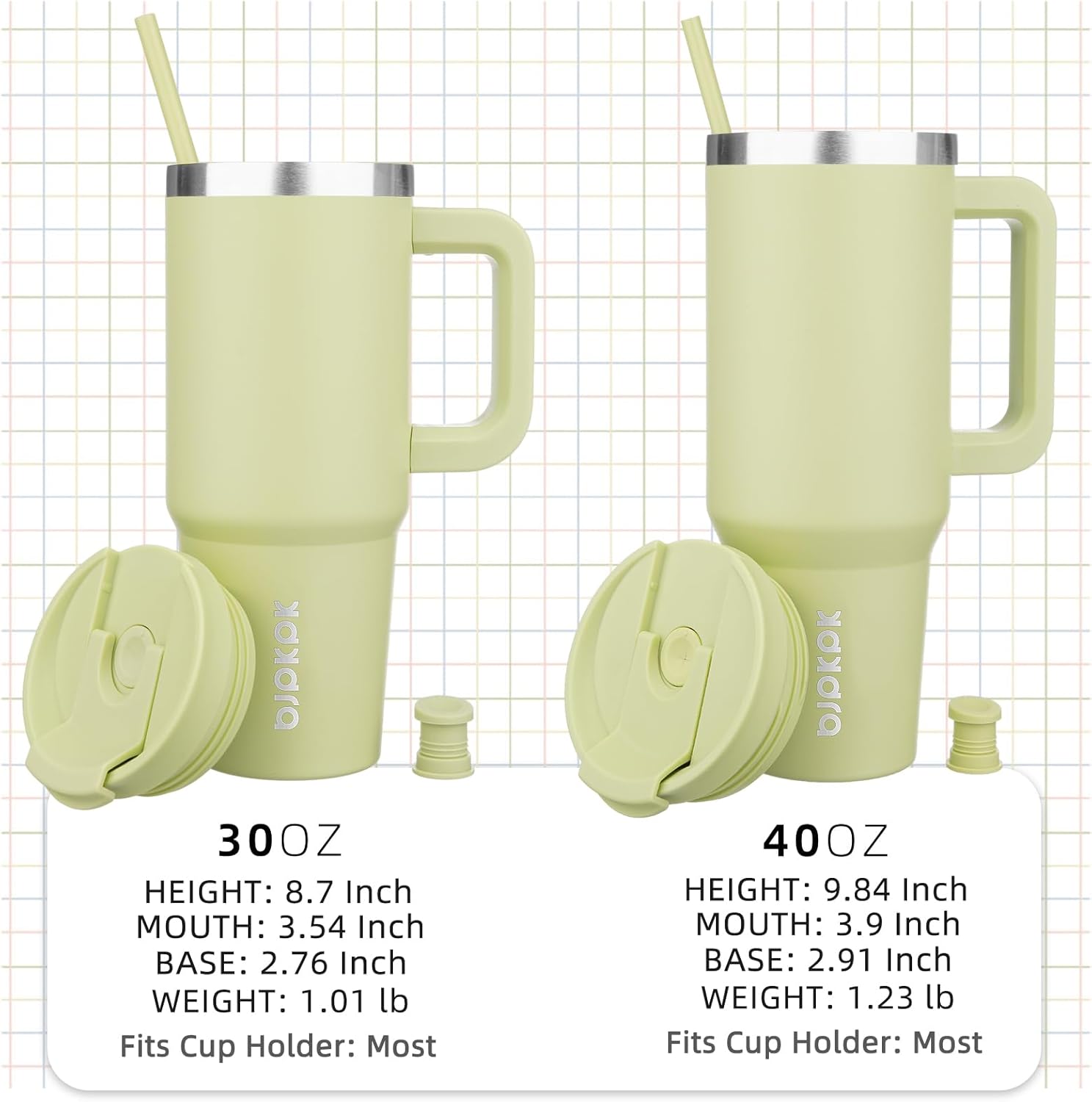 BJPKPK Tumbler With Handle And Straw 30oz Insulated Tumbler Cups With Lid Stainless Steel Travel Coffee Mug,Macaron Green