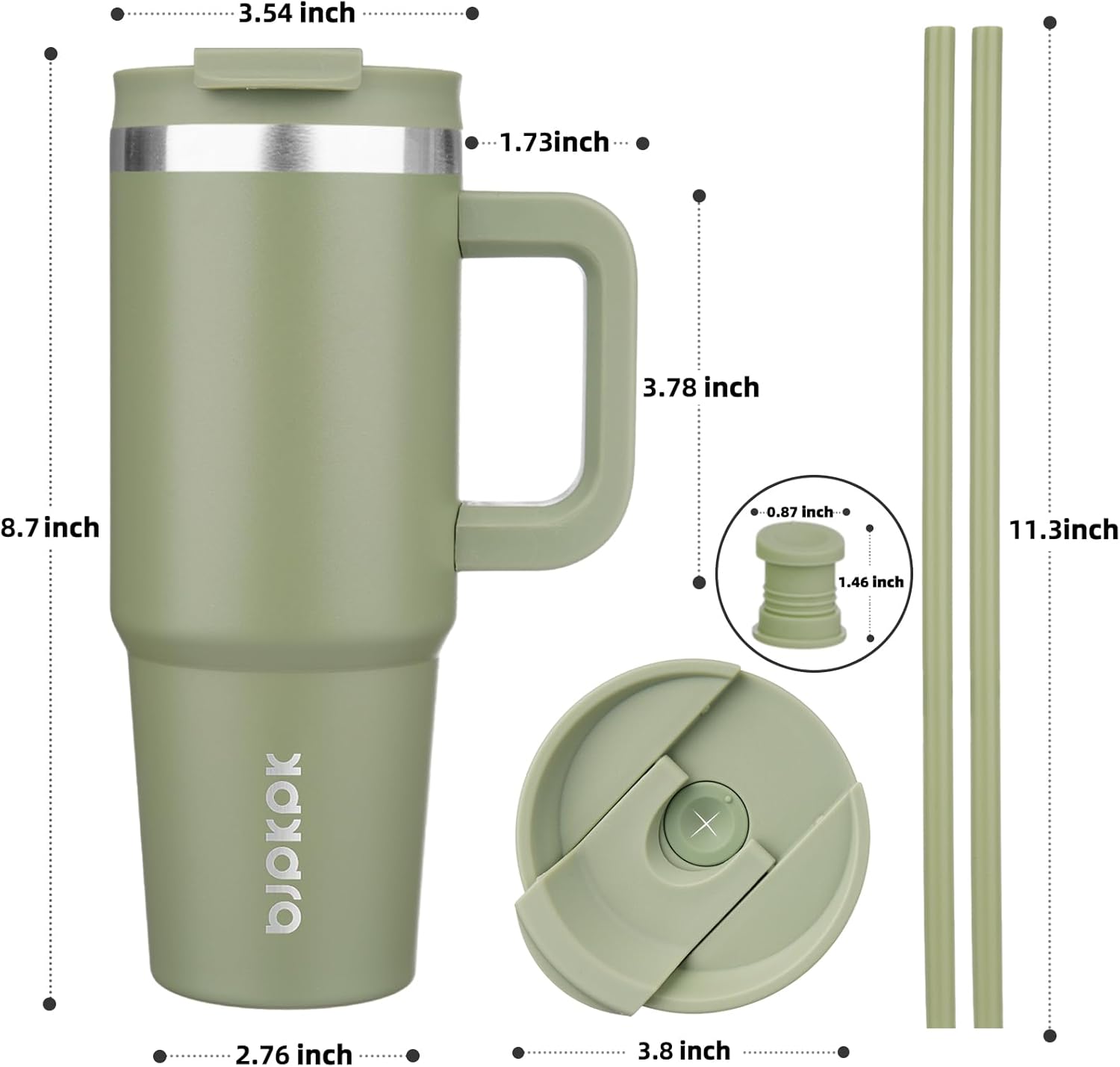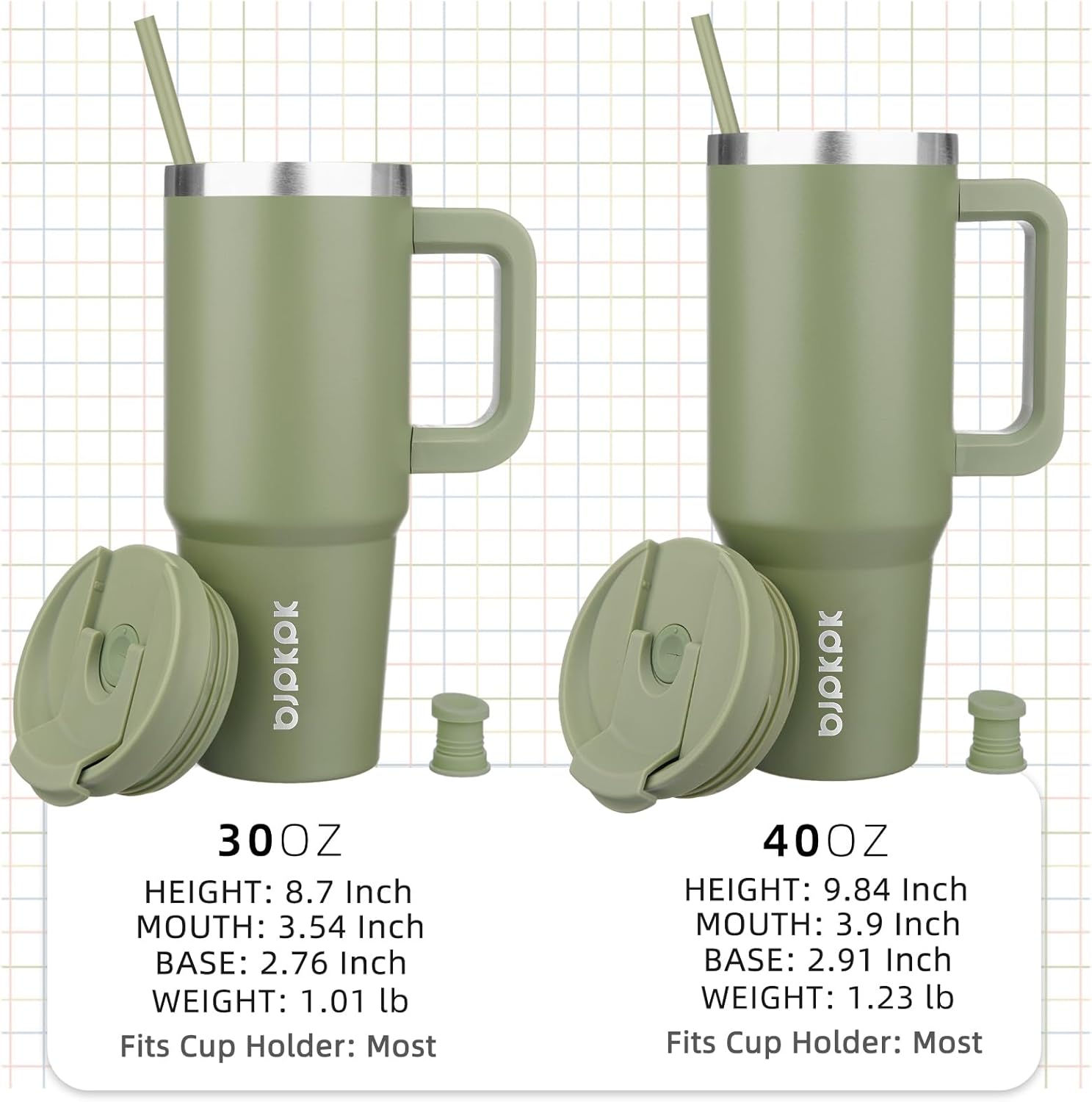 BJPKPK 30 oz Stainless Steel Tumbler With Handle Insulated Tumblers With 2 Straw Travel Coffee Mug With Lid,Sage