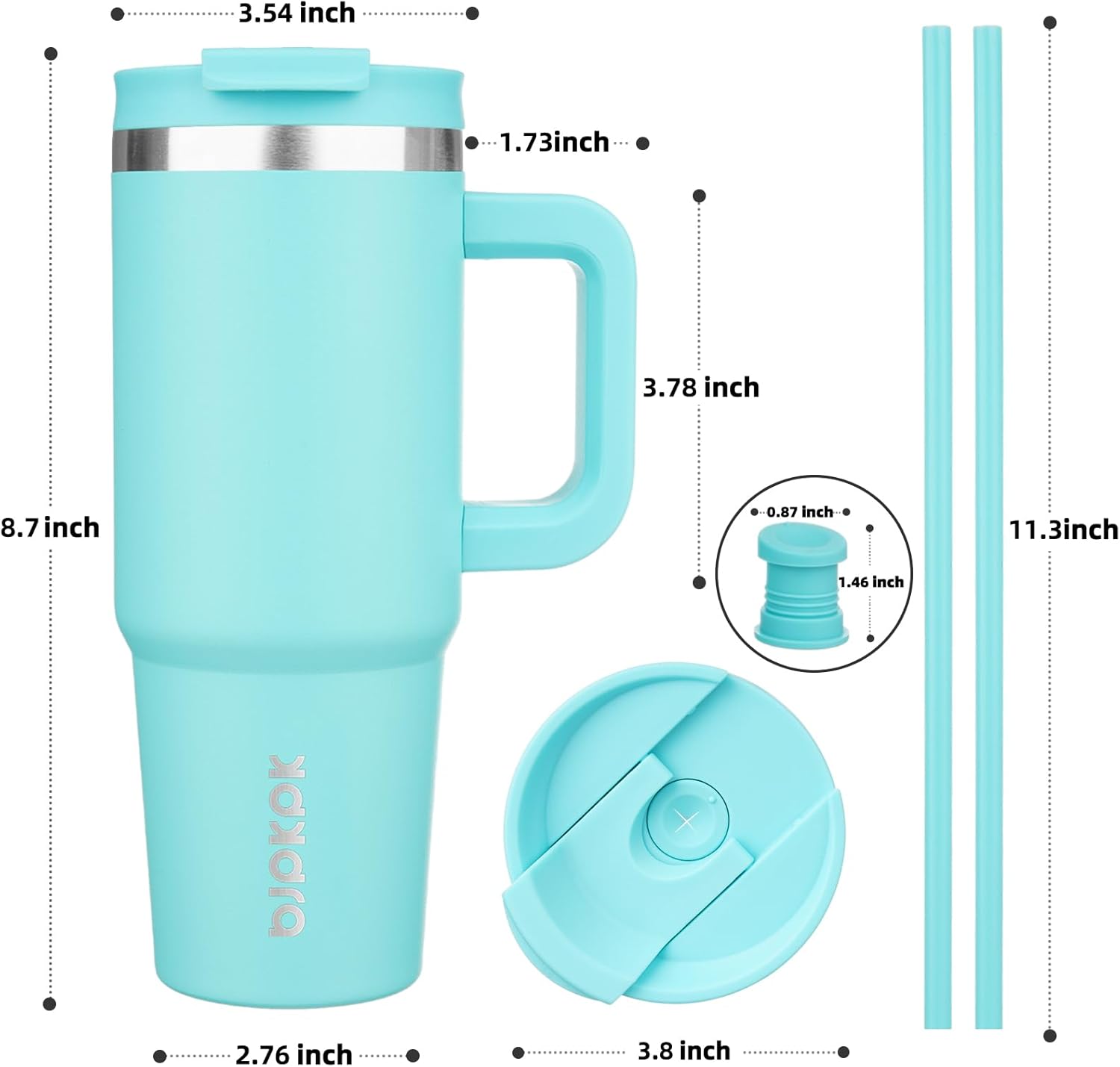 - Cupholder Friendly Travel Mugs With Handle: The Insulated Cups Has a Narrow Bottom And A Wide Mouth Fits Most Cup Holder In Car, With A Comfortable Ergonomic Silicone Handle And Two Reusable Straw To Use More Portable, You Can Stay Sipping From Your Essential Hydration Companion, Even On Your Busiest Days