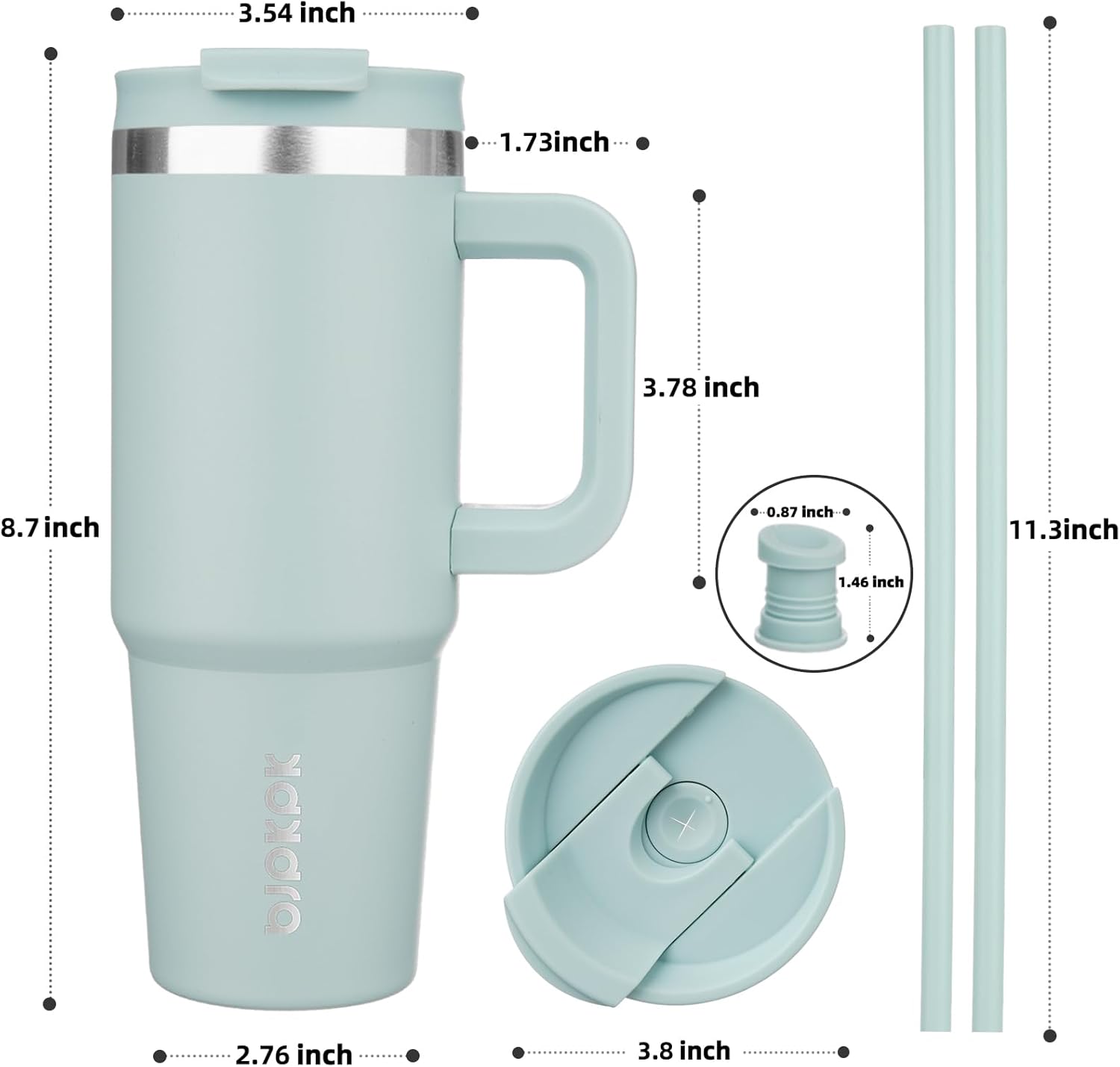- Cupholder Friendly Travel Mugs With Handle: The Insulated Cups Has a Narrow Bottom And A Wide Mouth Fits Most Cup Holder In Car, With A Comfortable Ergonomic Silicone Handle And Two Reusable Straw To Use More Portable, You Can Stay Sipping From Your Essential Hydration Companion, Even On Your Busiest Days