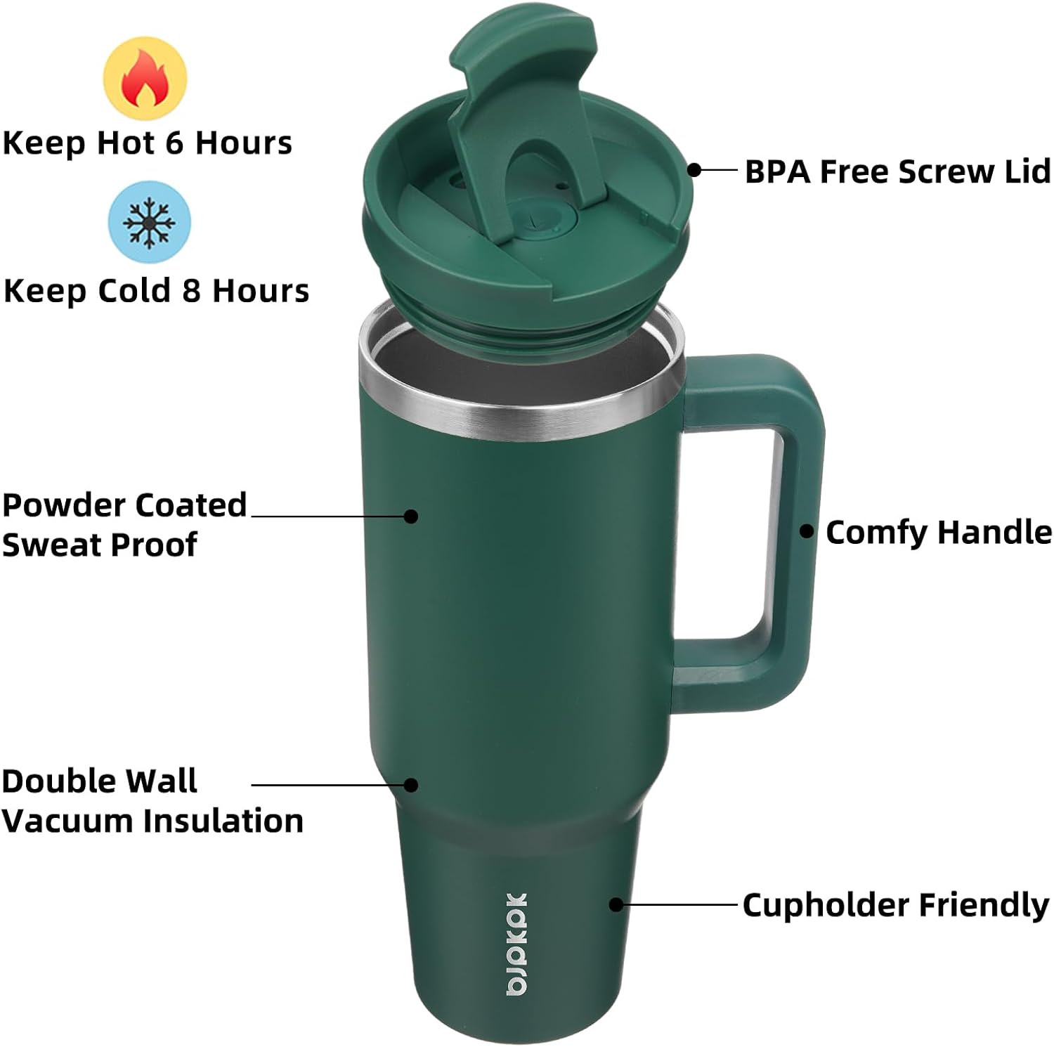 BJPKPK 40 oz Stainless Steel Tumbler With Handle Insulated Tumblers With 2 Straw Travel Coffee Mug With Lid,Army Green