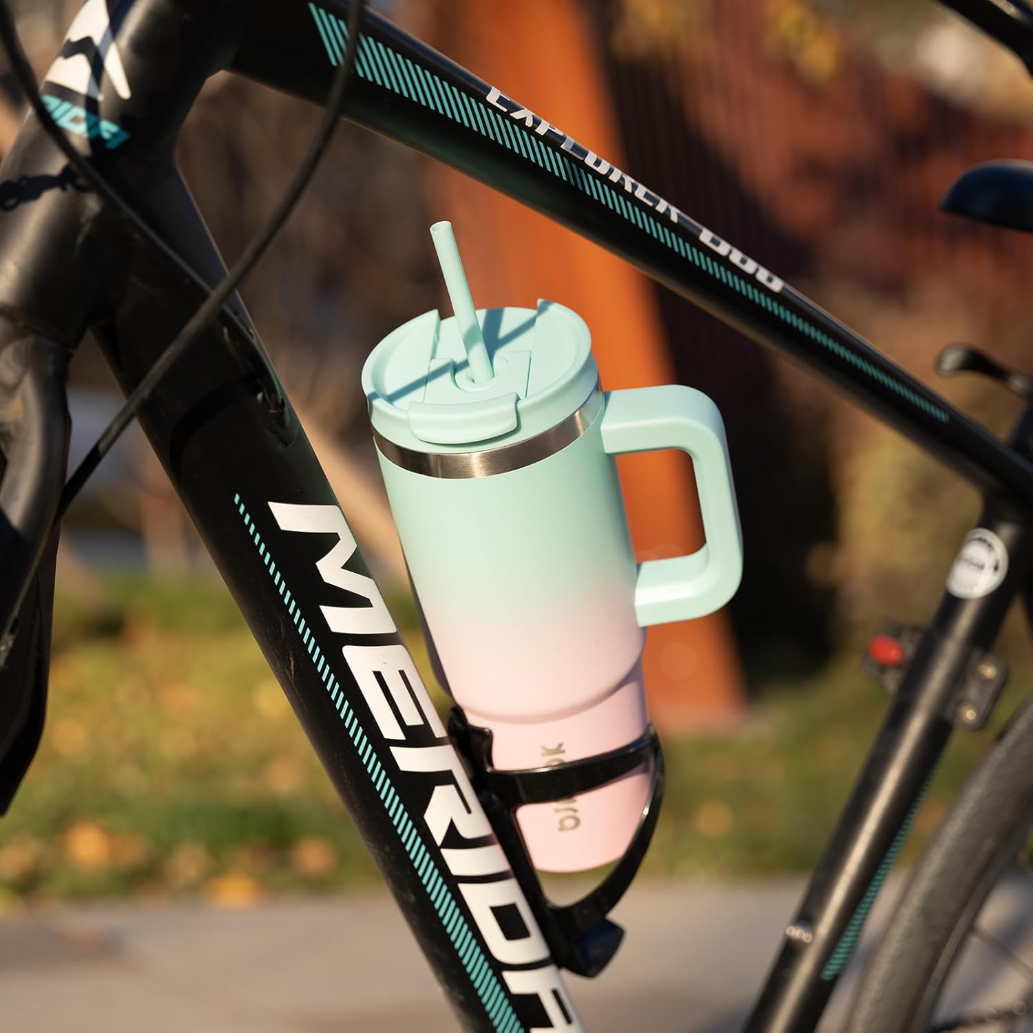 - Cupholder Friendly Travel Mugs With Handle: The Insulated Cups Has a Narrow Bottom And A Wide Mouth Fits Most Cup Holder In Car, With A Comfortable Ergonomic Silicone Handle And Two Reusable Straw To Use More Portable, You Can Stay Sipping From Your Essential Hydration Companion, Even On Your Busiest Days