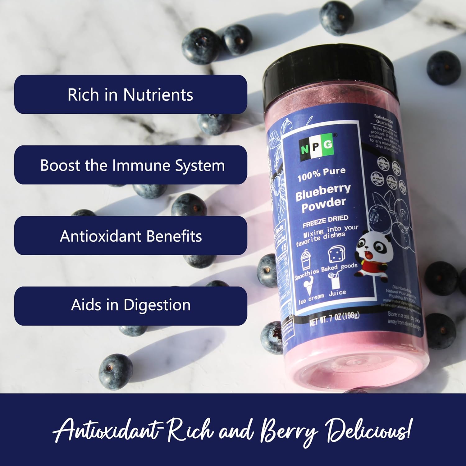 NPG Frezee-Dried Blueberry Powder 7 Oz, Seedless Fine Powder from Wild Wild Blueberries for Smoothies, Baking, Beverages, and Natural Food Coloring, No Sugar Added, Non-GMO