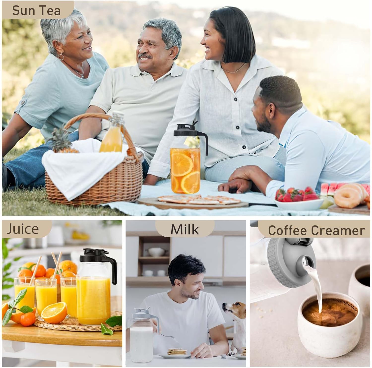 64oz Glass Pitcher with Lid - 2 Quart Mason Jar Pitcher with Spout, Leak-proof Milk Container for Refrigerator, Easy to Clean Wide Mouth Water Jug, Juice, Tea, Iced Coffee, Beverage and Drinks