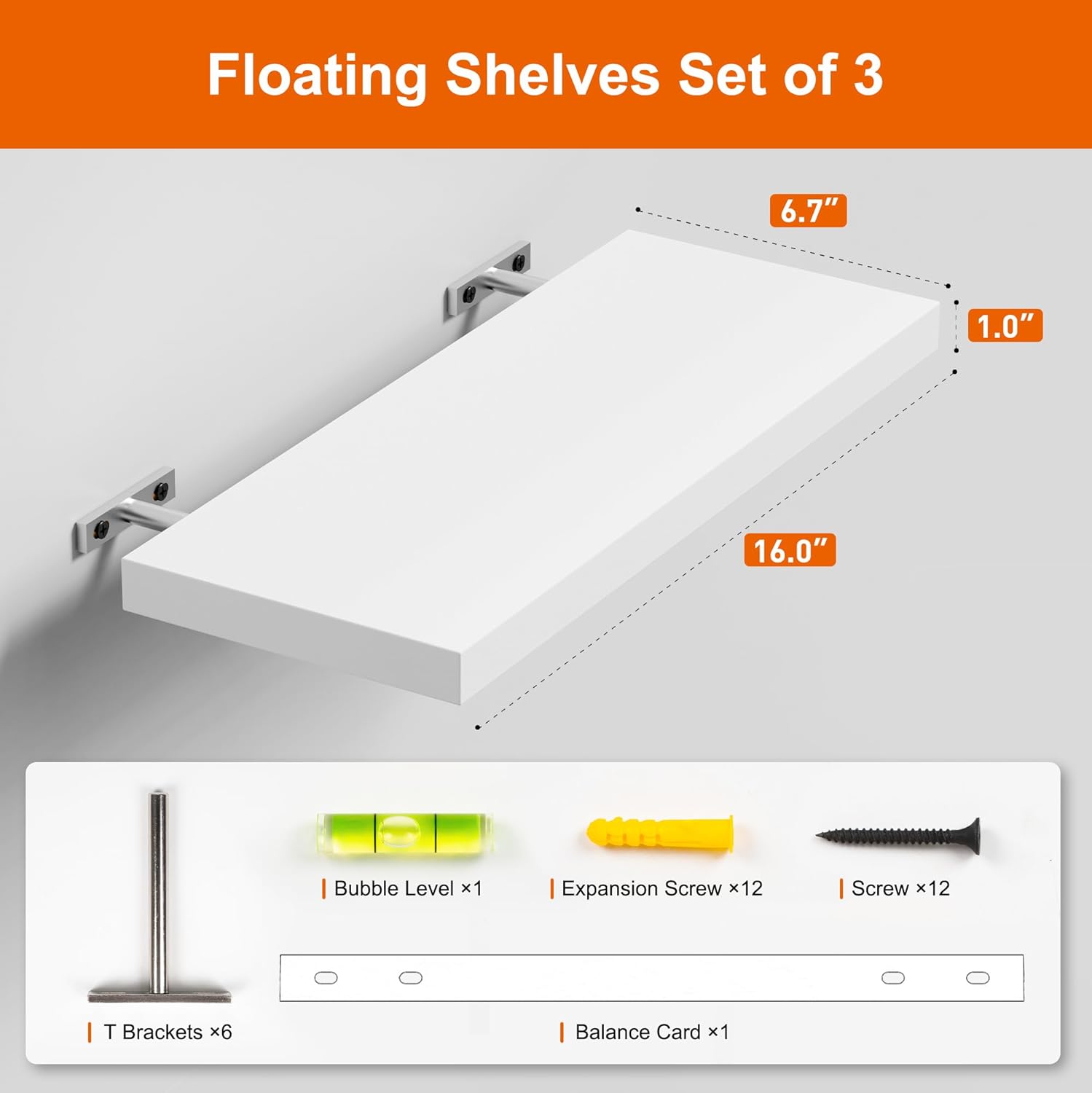 - 【Easy To Install】It is not necessary to worry about how to install white shelves. Our white floating shelves for wall include all necessary hardware and use T-type bracket which make our shelves for storage wall mounted installation more easier and more sturdy, we not only have clear instruction but also have detailed assembly video to ensure us have smooth process to assemble our white floating shelves quickly in less than 20 minutes.