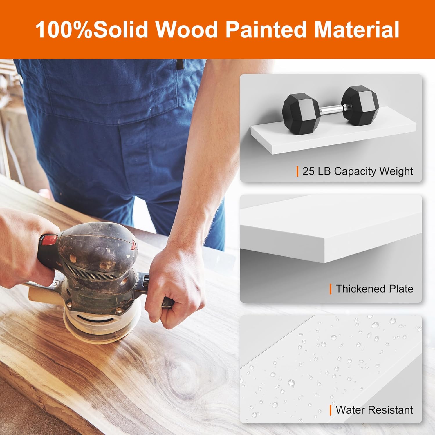 - 【Sturdy & Durable】In order to improve our wall shelf stability we adopt to premium paulownia wood which is lightweight material doesn't put too much burden on the wall. Our white floating shelves for wall use thicker board than the others, and adopt hidden durable double pipe iron bracket to ensure our white shelves for wall more stable and load-bearing. Every shelf has 25lbs load-bearing capacity, and no exaggeration that our shelves for storage wall mounted can durable for long-term use.