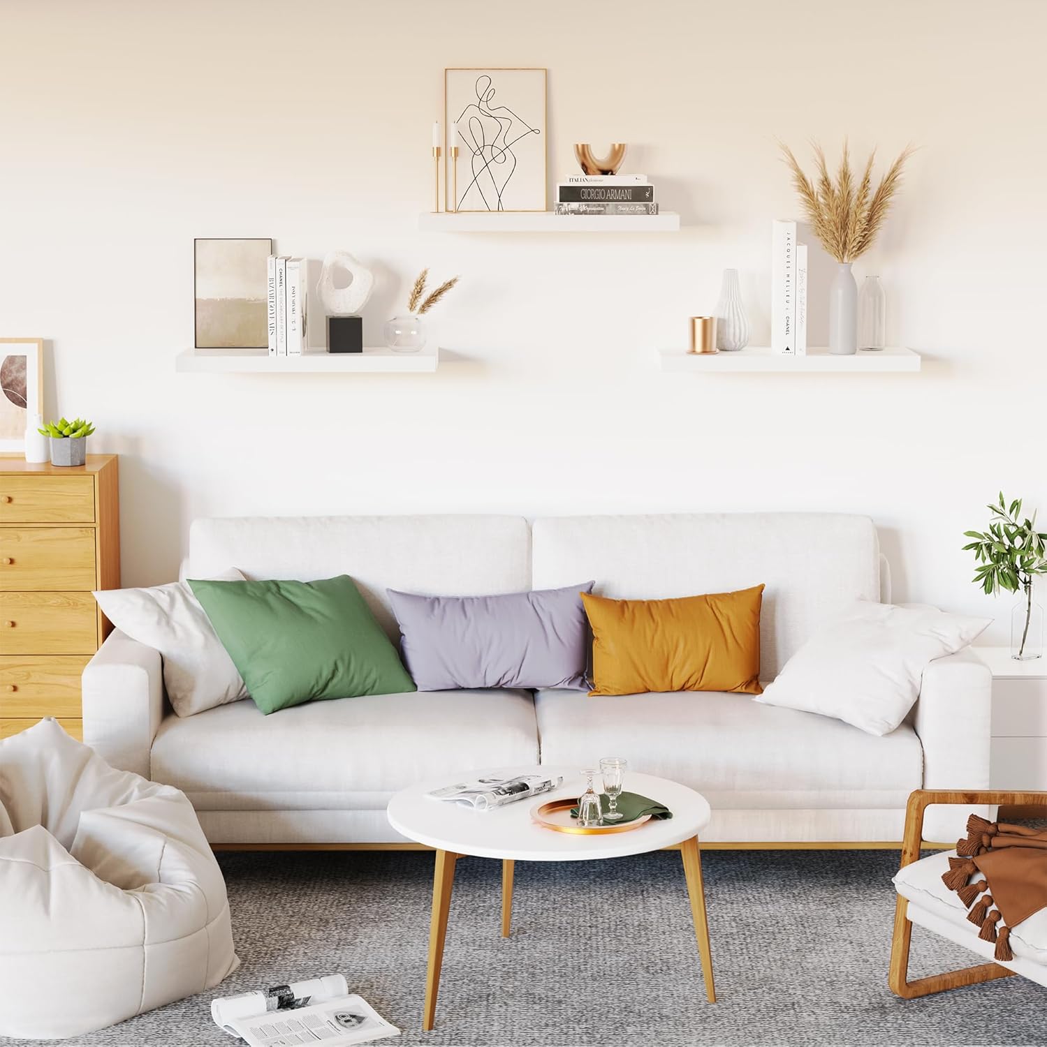 - 【Versatile & Functional】Our white floating shelves for wall can simplify our life which let everything will be in reach. Our wall shelf is a perfect space to display our family pictures, books, memorandums, charming antiques or artwork, spices or jars and fresh green plant. Our floating shelf wood not only give us extra storage but also improve the beauty of our home decor. Our white shelves can be perfectly integrated and decorated in the bathroom, kitchen, living room, bedroom and other place.