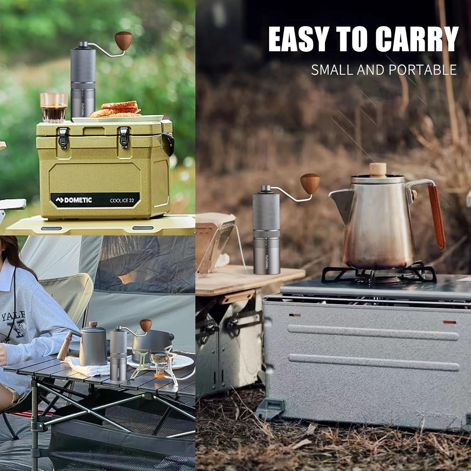 Manual Coffee Grinder With External Adjustable Stainless Steel Reticulate Pattern Hand Coffee Grinder, Suitable use for Various Places Such as Home Kitchens,Restaurants, Travel Etc. Grey.