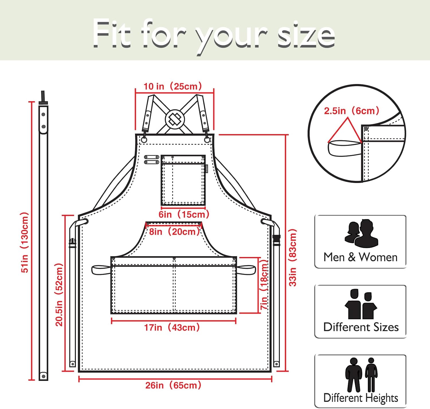 - Fashionable and Professional Protection: This canvas apron is designed to be stylish and provide professional protection, providing good coverage and protection from the chest to the knees, preventing grease , sawdust and dirt from dirtying clothes