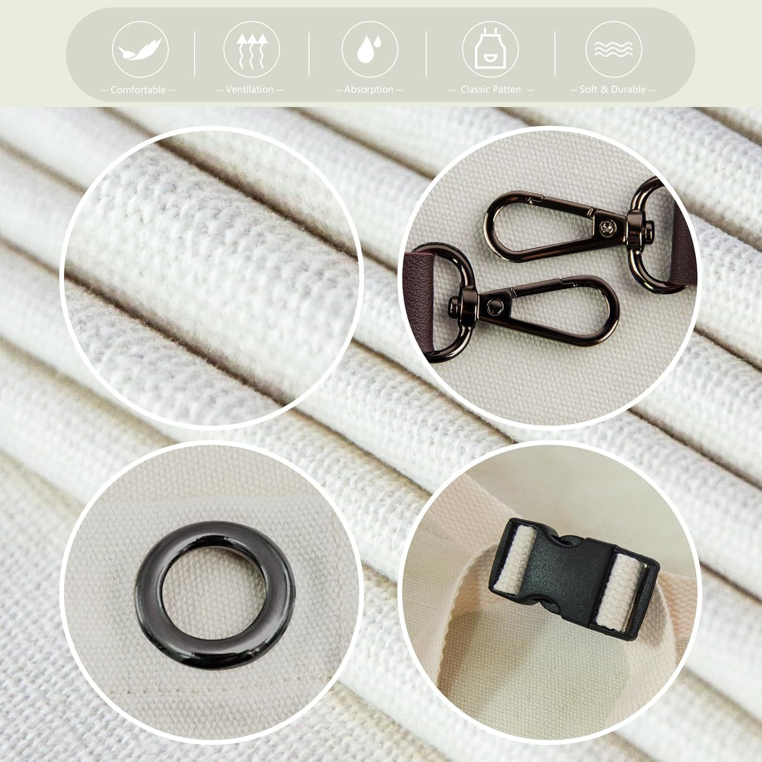- Expert Craftsmanship: This apron is made of 12-ounce cotton canvas, metal grommets, rivets, and leather. The pockets are reinforced with metal rivets at the corners, with double stitching and bottom folding edges to increase strength and durability