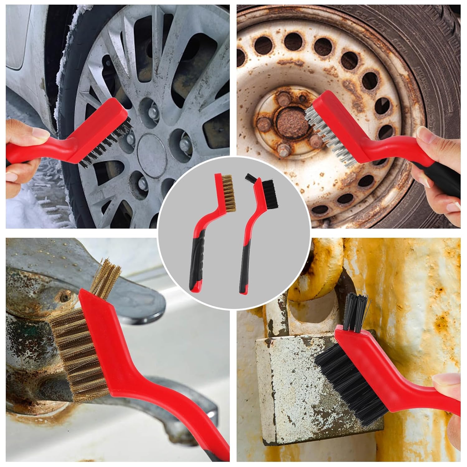 - [3 Types of Wire Brush Meet Your Need] The wire brush set includes 2pcs brass brushes for aggressive cleaning, 2pcs stainless steel brushes for abrasive cleaning and 2pcs nylon brushes for gentle cleaning. 6 pieces in total, suitable for different surface types.
