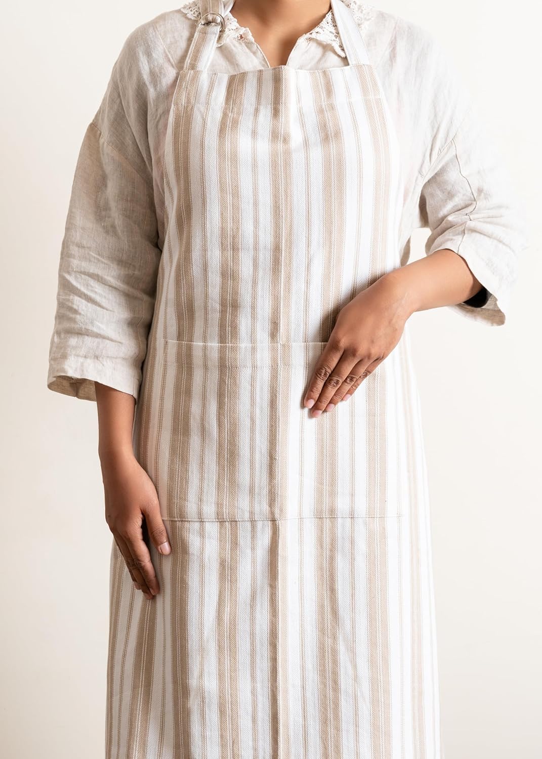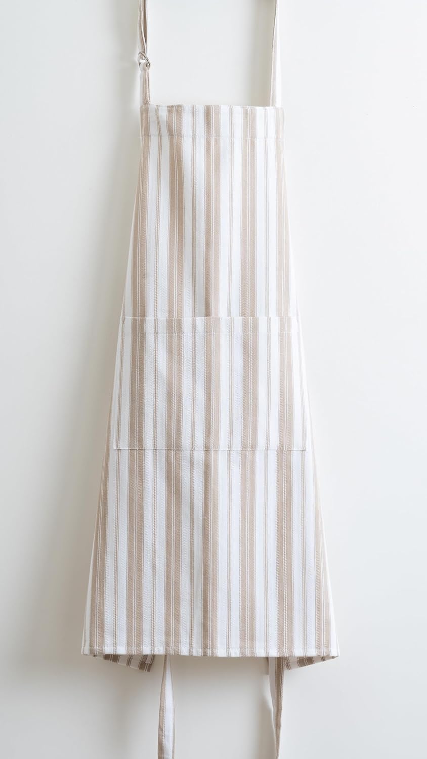 Cotton Professional Apron For Kitchen – 28 x 32 Inches – For Women & Men – Useful When Cooking, Baking, Gardening – Adjustable Strap Around Waist & Neck With Pockets Taupe Stripes