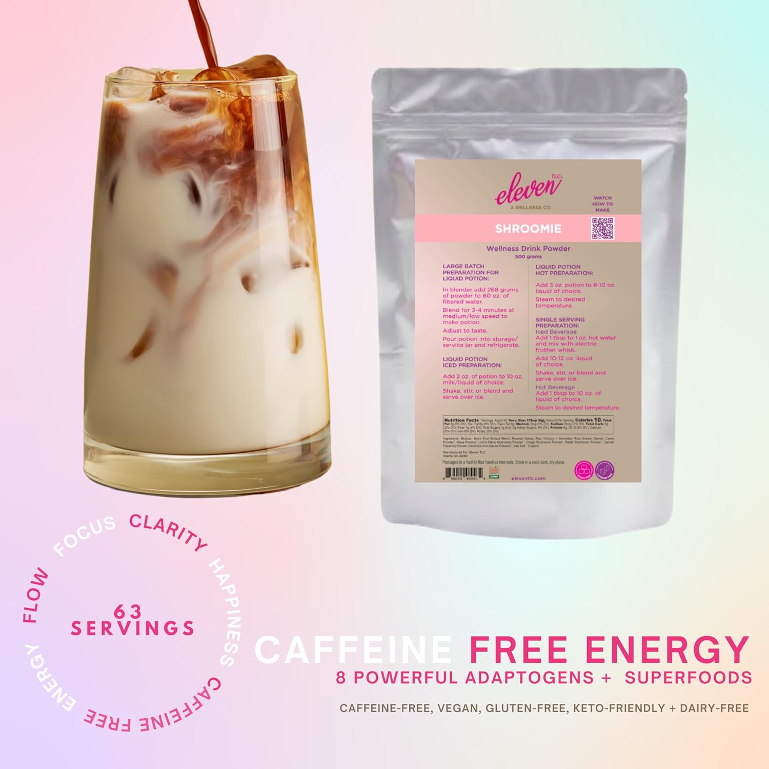 Eleven TLC, Shroomie Master Mind Mushroom Coffee Alternative, 7 Superfoods, Chaga, Reishi + Lion's Mane, Dandy Blend, Energy, Focus, 63 Servings
