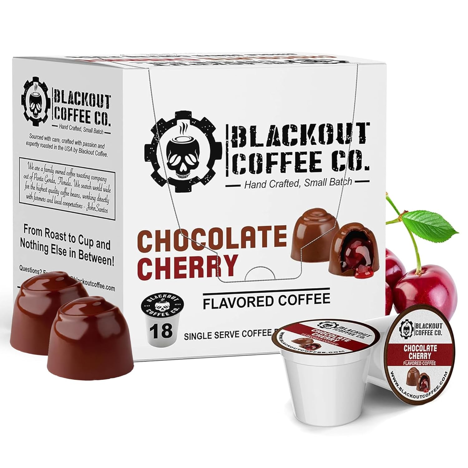Blackout Coffee Chocolate Cherry Flavored Pods - Freshly Roasted in the USA - K-Cup Compatible Single-Serve Pods (18 Count)