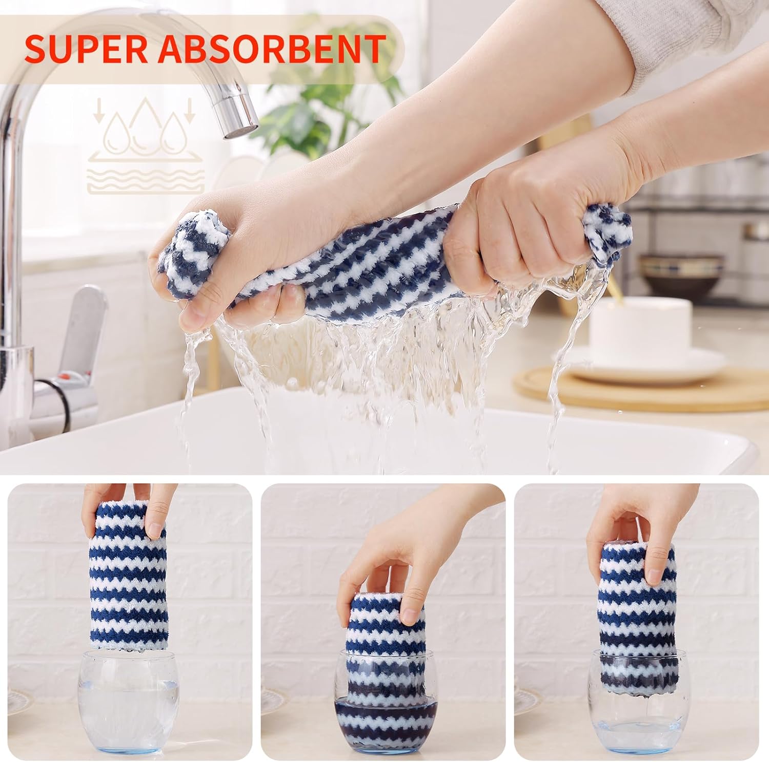 Homaxy 12 Pack Kitchen Dish Cloths, Ultra Soft and Absorbent Dish Towels, Reusable Fast Drying Microfiber Cleaning Cloth, Coral Velvet Wave Design No-lint, 10 x 10 inches, Navy Blue