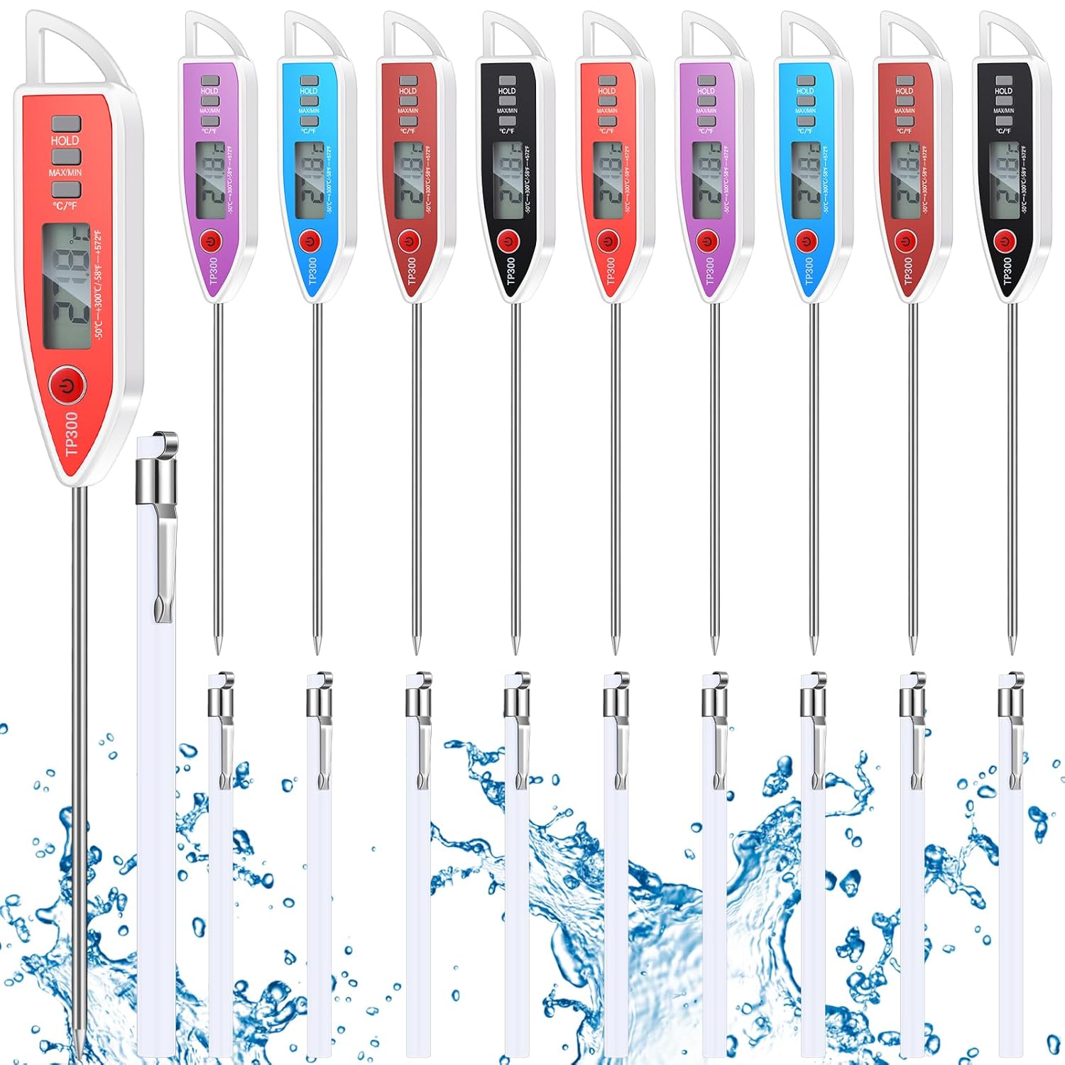 - Waterproof Capability: with strong waterproof abilities, this instant read thermometer for cooking is good for measuring the temperature of liquids like water, milk, and even candles; Its entire body is washable, making it easy to clean and maintain
