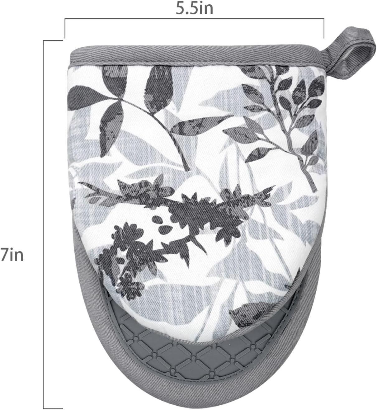 Mini Silicone Oven Mitts, Heat and Slip Resistant Kitchen Mittens 2-Pack Set, Foliage Flower Soft Short Oven Gloves, Flexible Thick Pot Holders for Safe Cooking Baking and Grilling (Grayish)