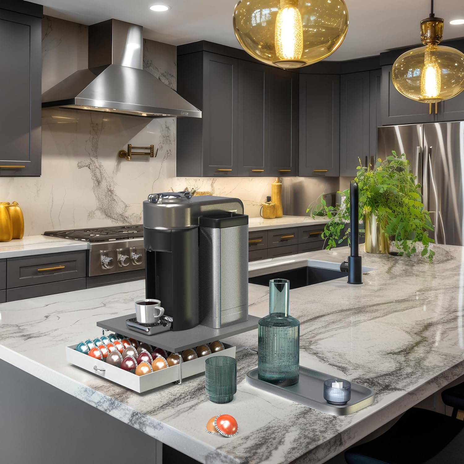 - [ Sliding Drawer Design ] The sliding drawer mechanism allows easy access to your coffee pods, making selecting and using them convenient.