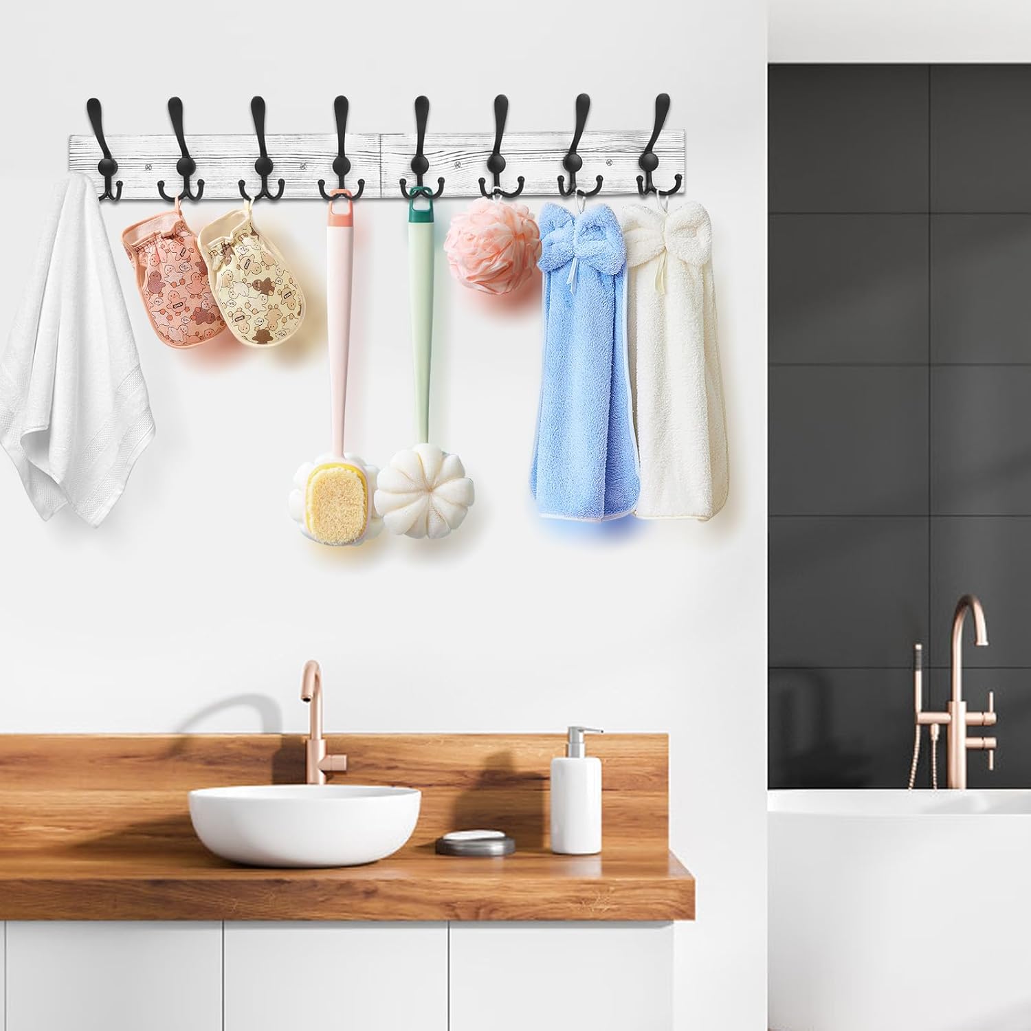 - Material - Made of rustic wood and aluminium alloy, each sturdy metal hooks can hold up to 25 lbs of weight