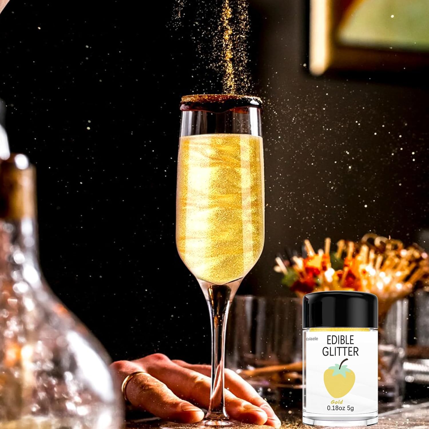 - Easy to Use: Colaele gold edible glitter for strawberries is easy to use. Beginner friendly and all you need to do is sprinkle it on! Edible glitter also can be shared to decorations or used spray gun for smoothing. Sprinkle on Sparkle and Luster to Sweets for your cake or sugar art to add luxury luster effects