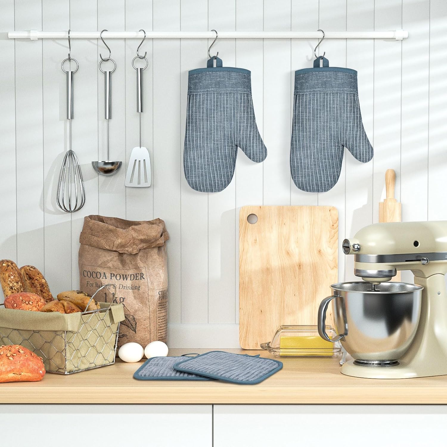 Oven Mitts and Pot Holders, Silicone Oven Gloves, 500 F Heat Resistant Oven Mitts Sets, Non-Slip Silicone Textured Grip, Blue
