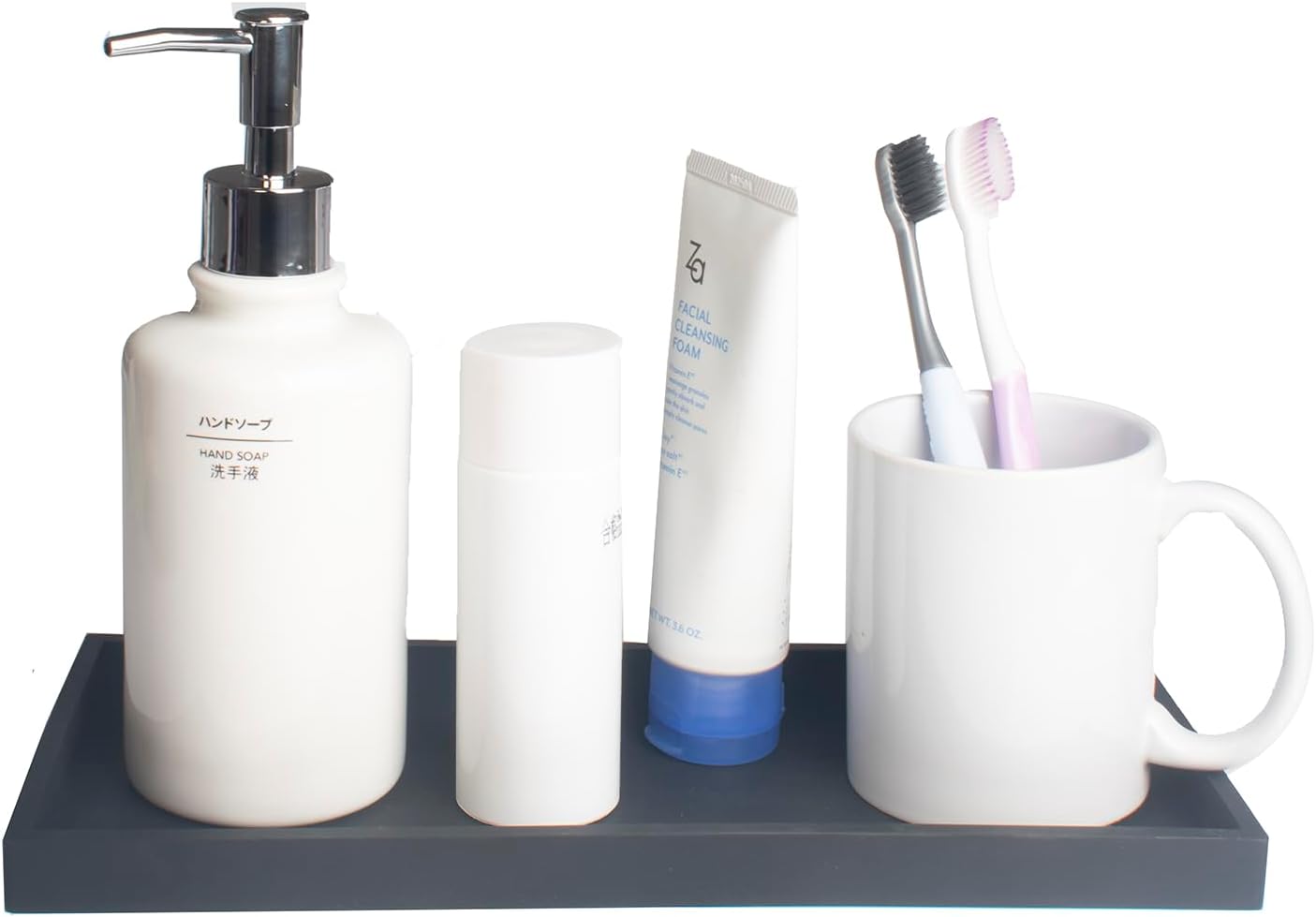 - Fashion Exquisite Design – This silicone tray is decorative, which matches perfectly with countertop to brighten up home decor. This tray allows to organize dish soap, sponge, perfume, candle, cologne, makeup, ring, key, trinket, skincare and other life essentials. You can tidy up easily to use these trays as kitchen or bathroom trays for counter or vanity trays for bathroom.