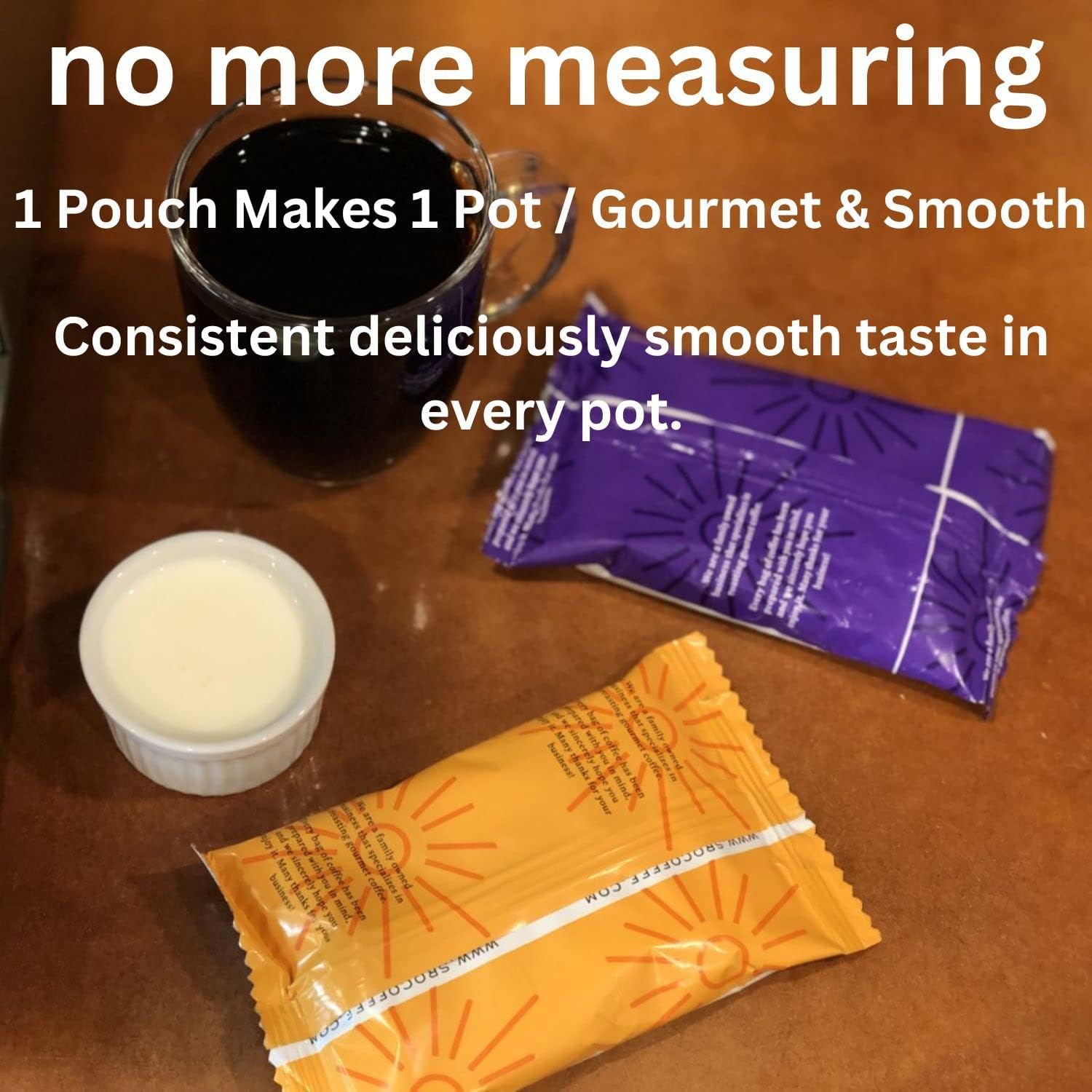 - PRE MEASURED CONVENIENCE - Each individual Packet is for a 10-12 Cup drip maker to make 1 full pot. The premeasured pouches keep your grinds fresh for over a year, ensuring each sip will be a silk smooth gourmet experience.