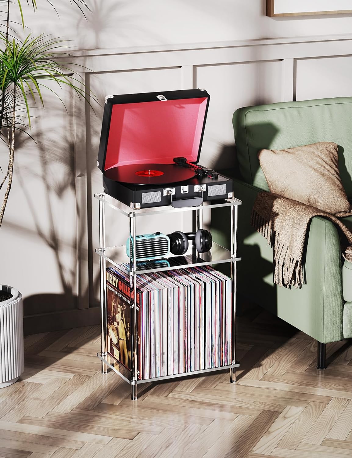 Acrylic Side Table Clear 3-Tier End Table for Living Room, Office, Hallway, Bedroom Small Bedside Table (8mm Thick Shelves)