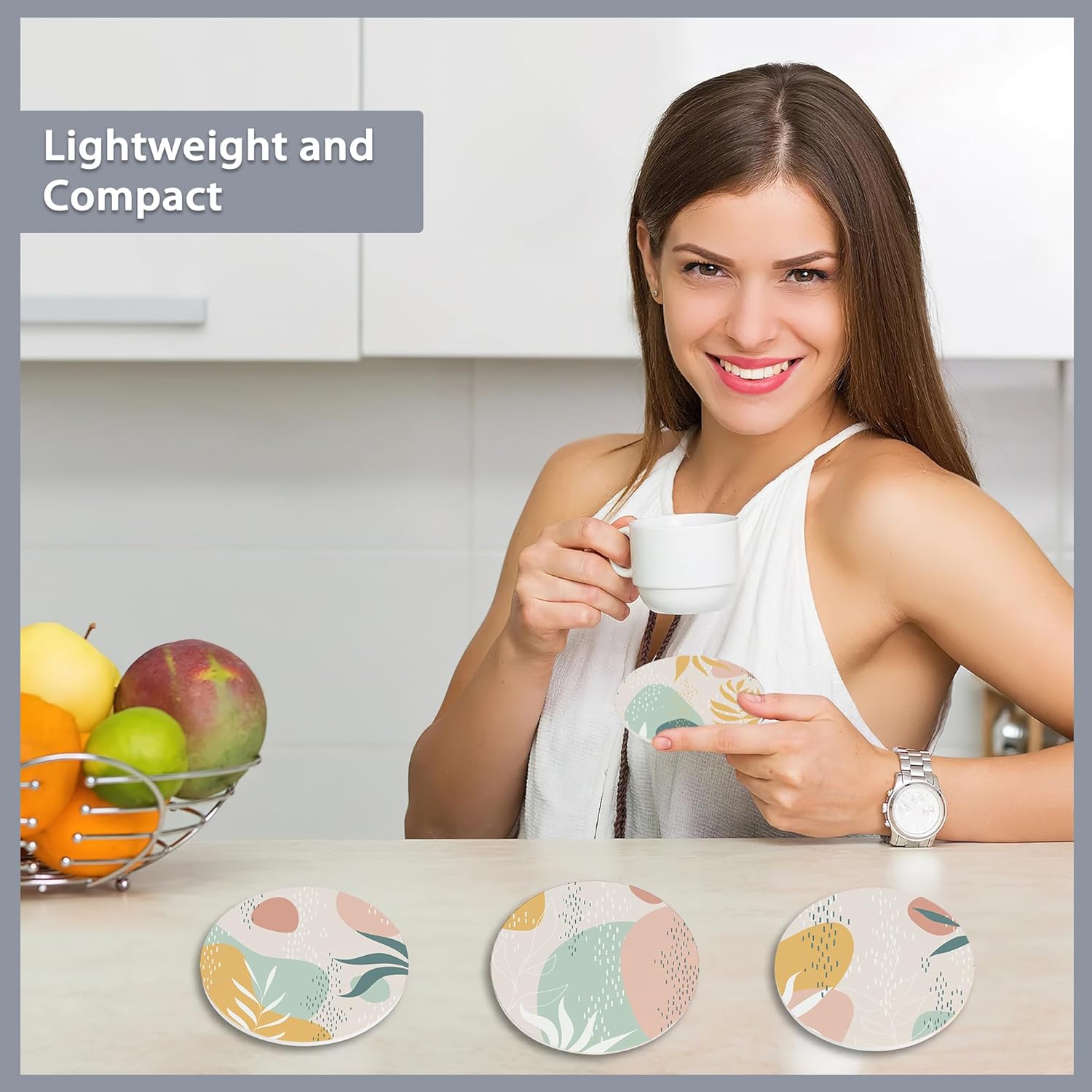 - 【Non Slip & Easy Clean】The coasters are smooth to the touch and measure 4 inches making it perfect for any beverage cup. Now you can confidently place your wet drinks or hot beverages on your coffee and dining tables. Simply clean them with a damp cloth and wipe them off within seconds.
